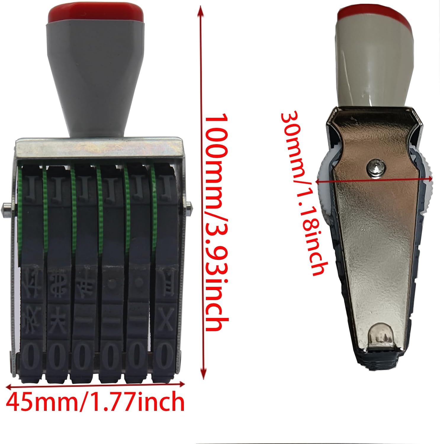 WANLIAN 6-Digit Business Stamp - Customizable 0-9 Numbers & Symbols,numbering Tool for Packaging, Office, Labels, Date, Code (40x7mm Imprint, Gray-Red)