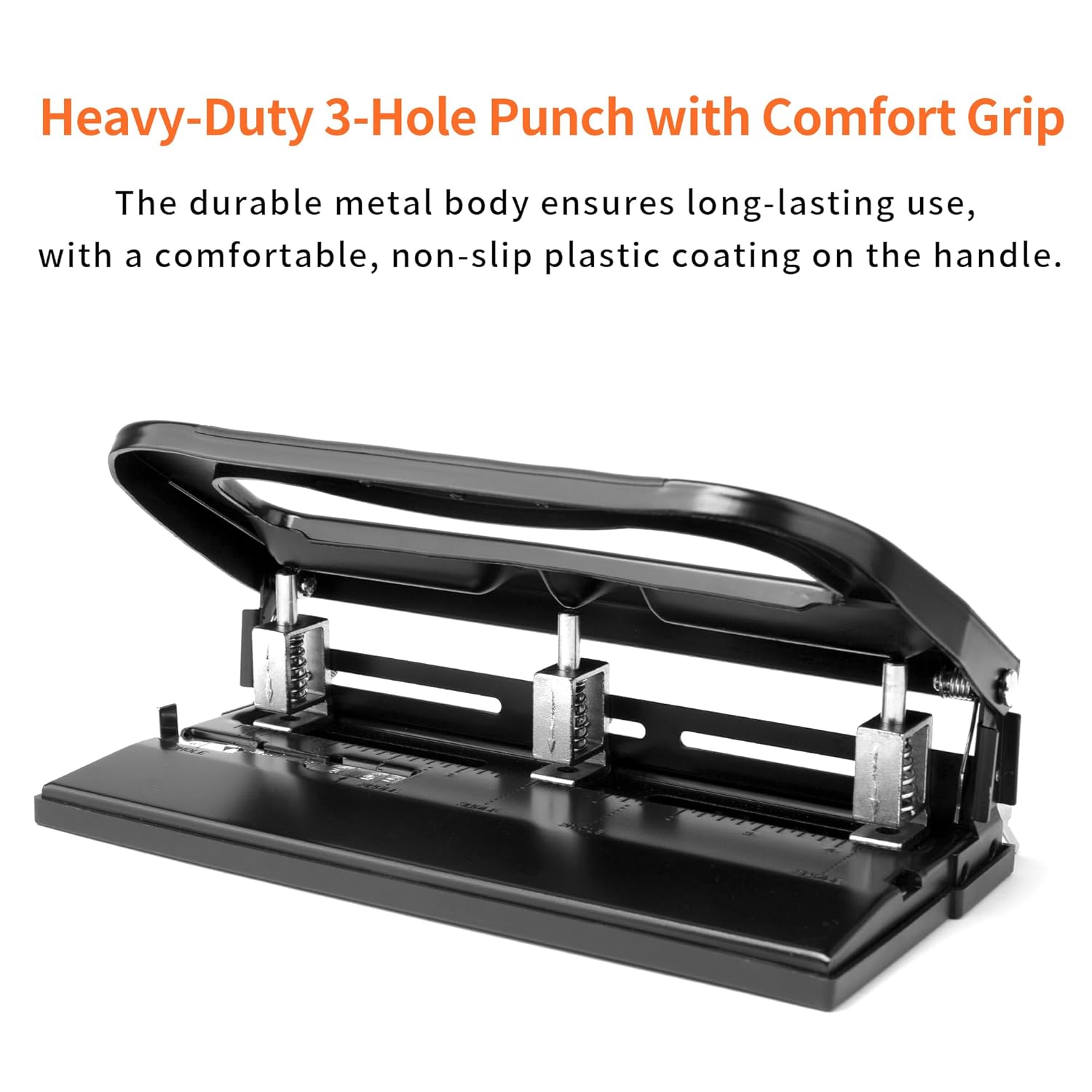 - Adjustable 2 or 3 Hole Punch: Easily switch between 2-hole and 3-hole settings with fully adjustable punch heads. Compatible with A4, US Letter, and various binder types—ideal for school, office, and home use.