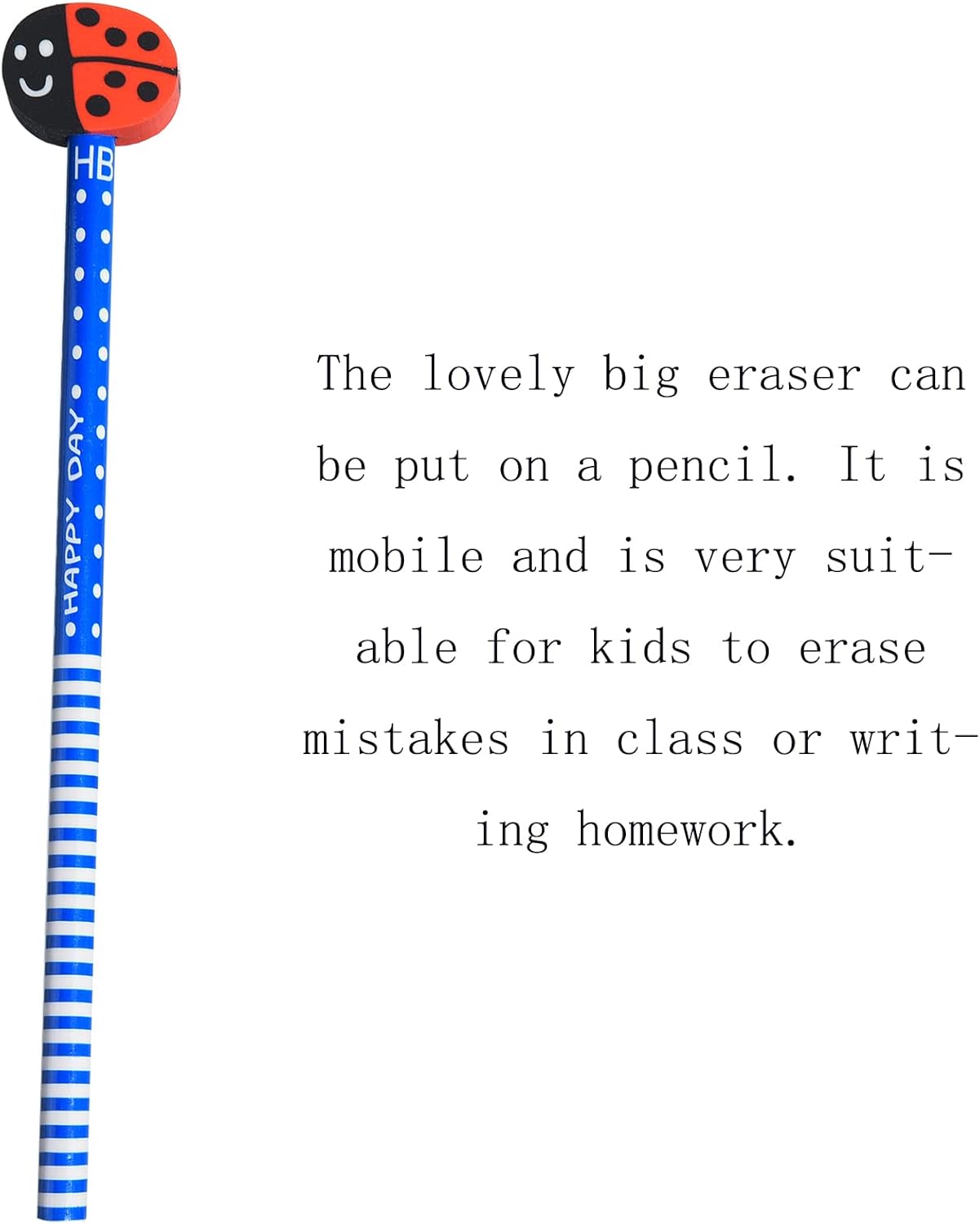 - Bright colors and attractive character designs make these erasers caps a practical and lovely addition to a school set or homework reward box.
