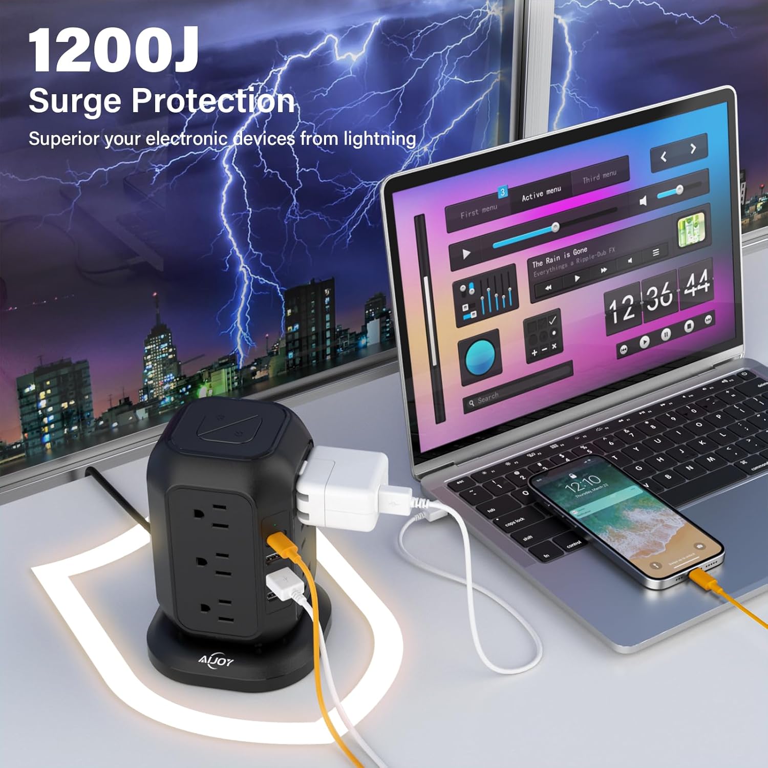 Power Strip with USB C Ports, AiJoy Surge Protector with 12 AC Outlet and 4 USB Ports, 10 FT Extension Cord, USB Charging Station with Overload Protection, Living Room, Office, Dorm