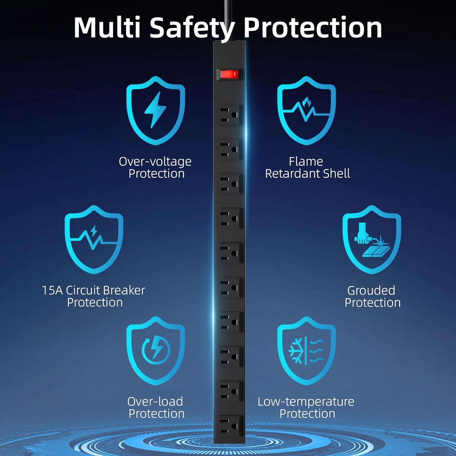 - MANY CHOICES:Heavy duty power strip with a variety of combinations of different number of jacks and different cord lengths to choose from. It meets all kinds of needs in life, and is very suitable for home, office, industrial, workshop, store and so on.