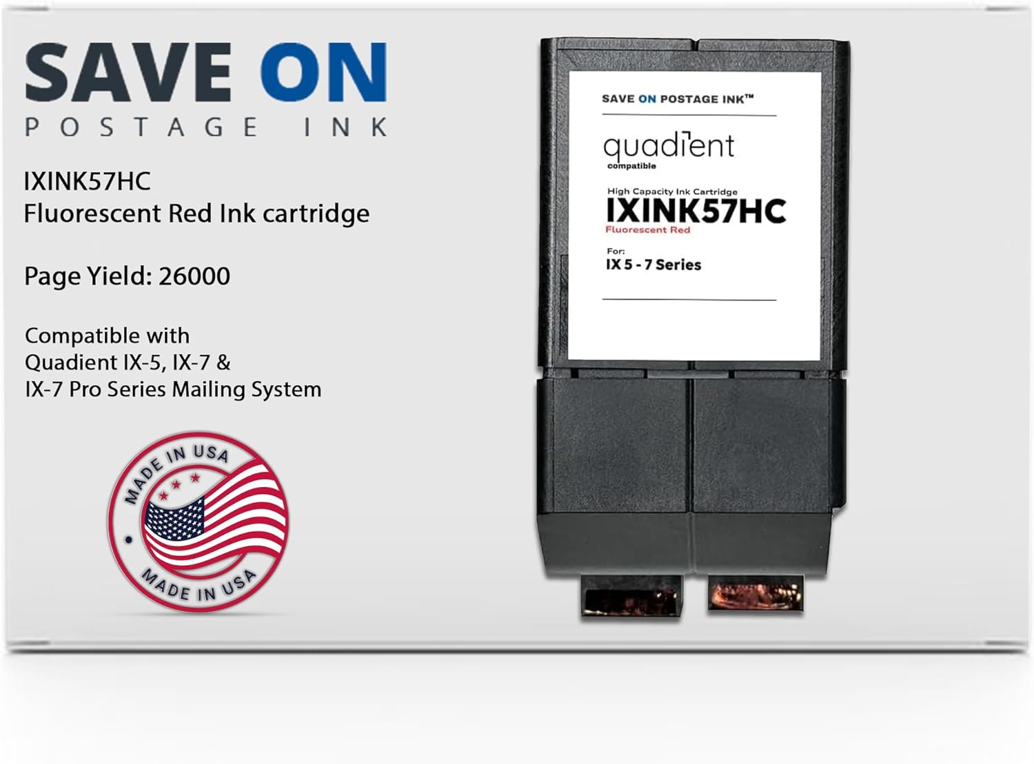 Compatible IXINK57HC Quadient Neopost Ink Cartridge (High Capacity) - Vibrant Fluorescent Red Printer Ink Cartridge for IX-5, IX-7 & IX-7 Pro Series Mailing Systems - Replacement Inkjet Printer Ink