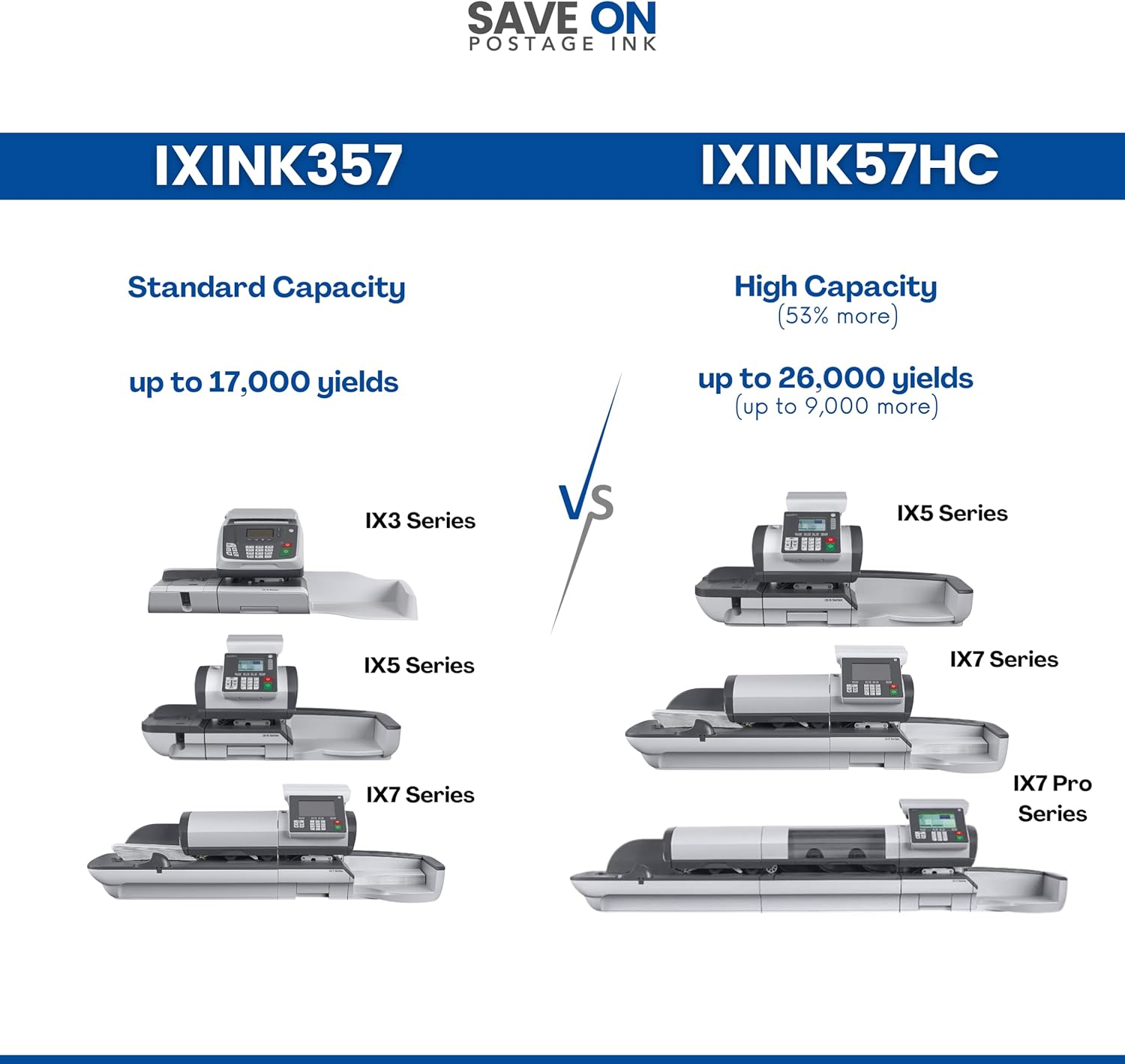 - Quality & Performance: Our IXINK57HC ink cartridge for printer offers a high yield of up to 26,000 pages. This cartridge provides a reliable and efficient solution for your Quadient IX-5, IX-7 & IX-7 Pro postage meter machine needs.