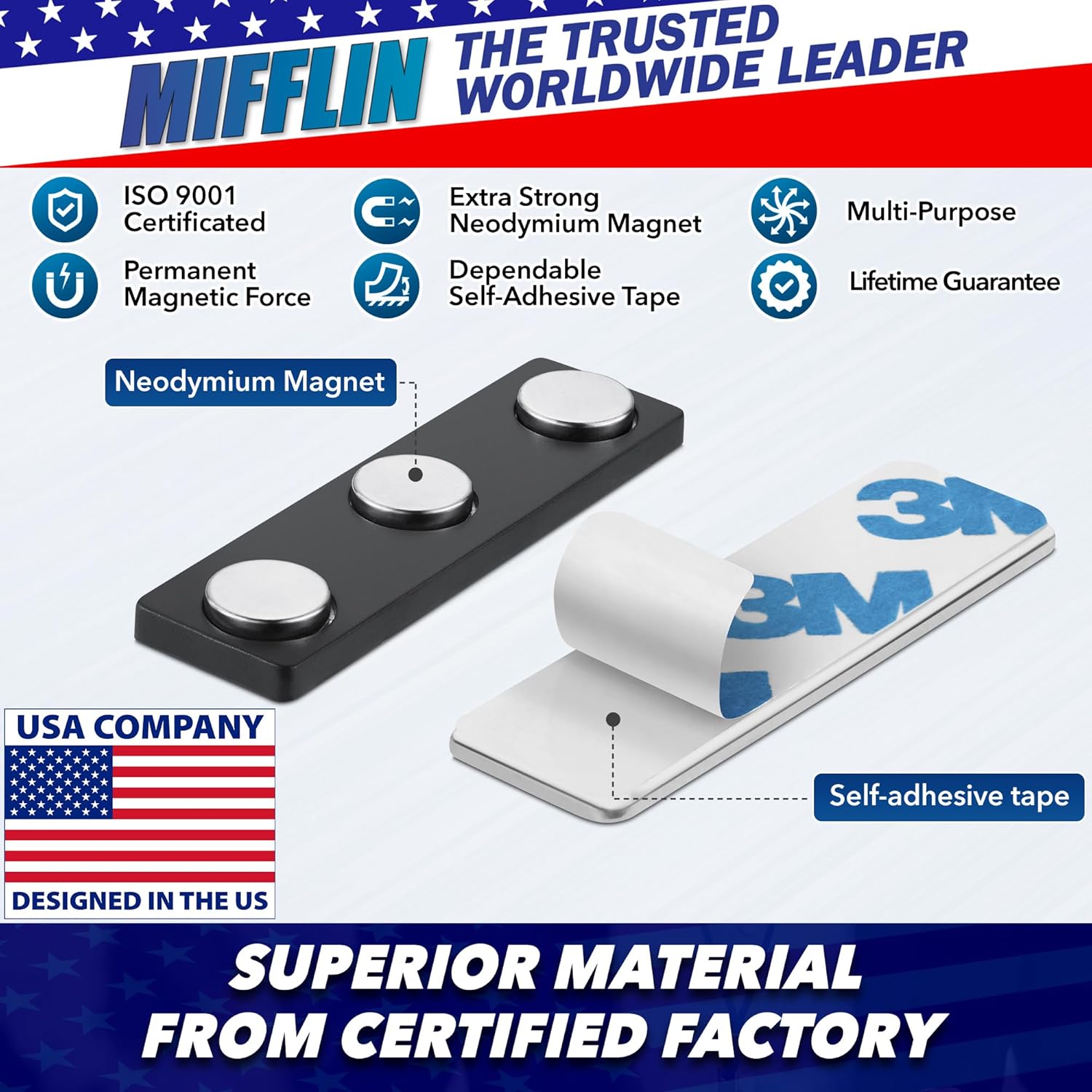 Mifflin-USA - Name Tag Magnets - 500 Pack, 1.75 x 0.5 Inches - Premium ID Badge Holder with 3 Extra Strong Neodymium Magnets