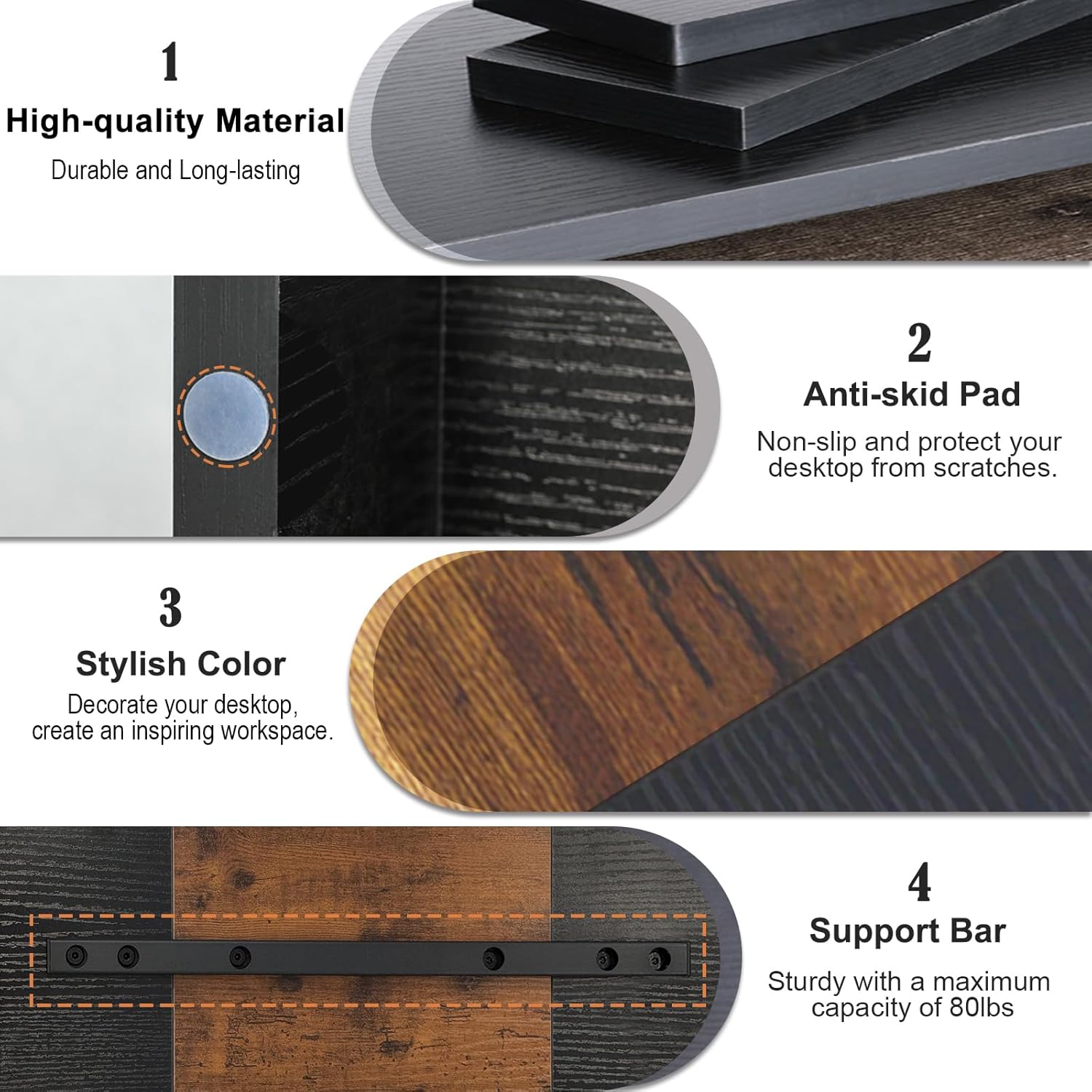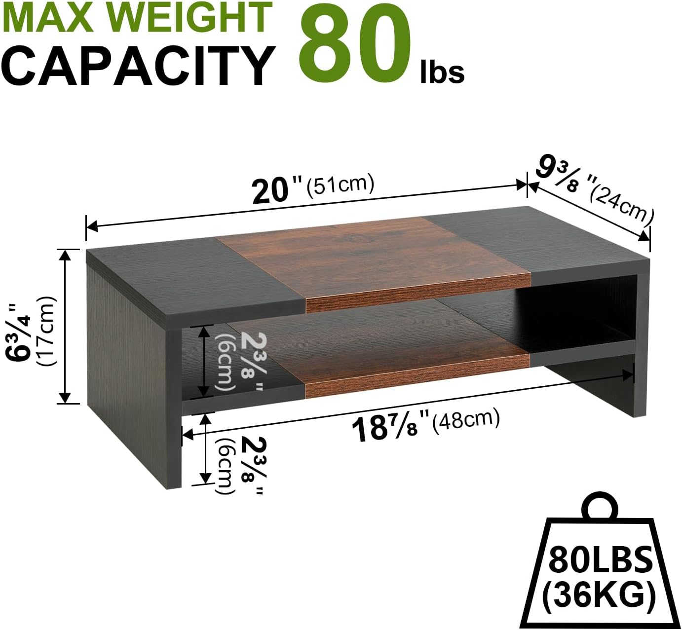- Better Support to 80lbs: The computer stand is made of eco-friendly thicken MDF wood board, and process optimization to make the stand more beautiful and durable. This monitor stand riser is a good choice for your office, living room, bedroom, and study.