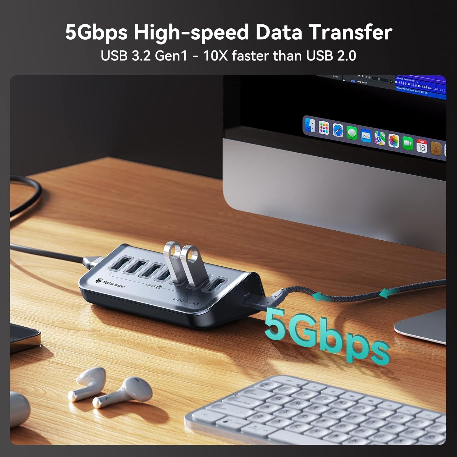 - ULTRA-FAST DATA TRANSFER - The powered USB hub can transfer files to your desktop or laptop at speeds up to 5Gbps. 10x faster than USB 2.0—fast enough to transfer an HD movie in seconds. Works with USB 3.0, 2.0, or 1.1 host controllers. NOTE: Transfer rates are device and USB host controller dependent.