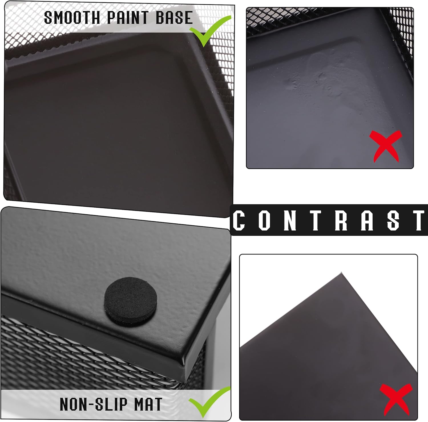 - High Quality Material:The pen holder is made of black mesh metal with a durable rust-resistant coating.The origin sturdy metal has gone through special washed down, colored, sprayed and dried processes to reach the fineness of this organizer 4 anti-slip EVA pads at the bottom,protect your desk from scratching.