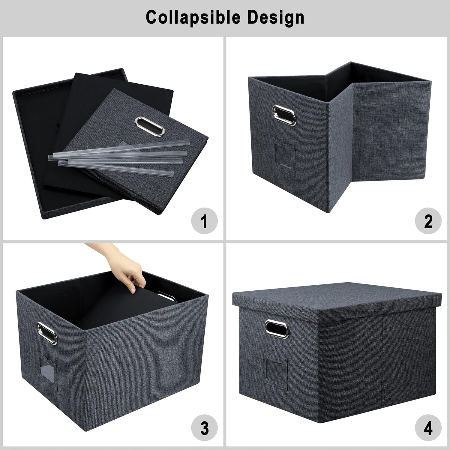 - Space Saving and Collapsible Design: Our Portable file boxes with lids are easy to organize all your files together and you can put them on your shelf, this office filing box with lid will creat you a special container to search files and make other places clean. when not in use, you can fold the filing boxes with lids down simply and they take a small space.