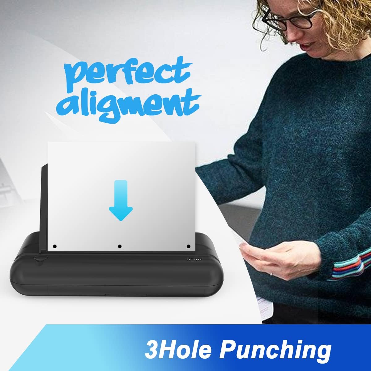 Electric 3 Hole Paper Punch, VEYETTE Heavy Duty Commercial Hole Puncher with Adapter for Office School Studio, 30 Sheet Capacity,Color Black