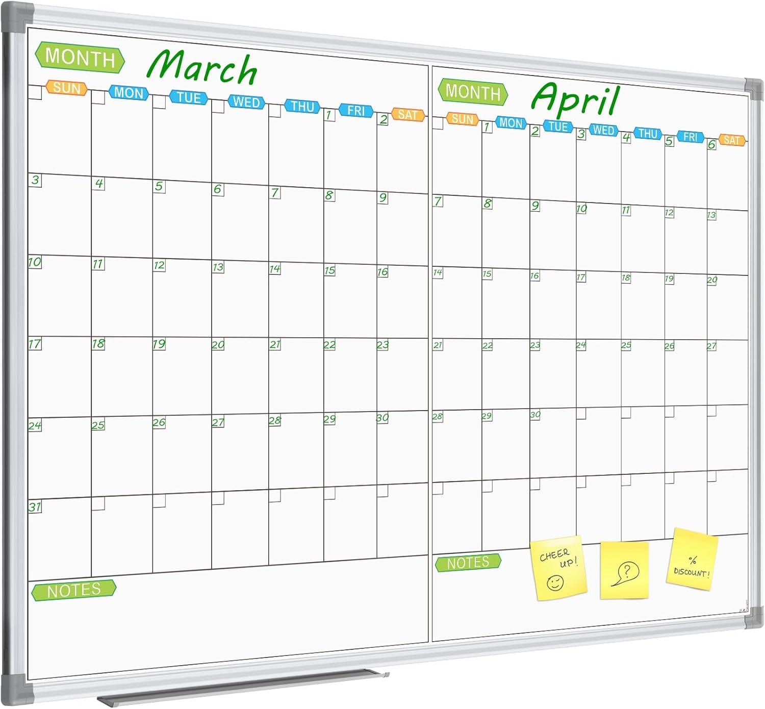 - MAGNETIC CALENDAR WHITEBOARD SURFACE: 2 months design make your plan look clearer and record things in these two months in more detail, surface can be used to mark dates meetings and appointments, Organize weekly plan, never forget important calendar, Strong magnetic performance, easy to put notes, pages, documents, photos, graphs and cards on. Creating more working, learning and playing experience.