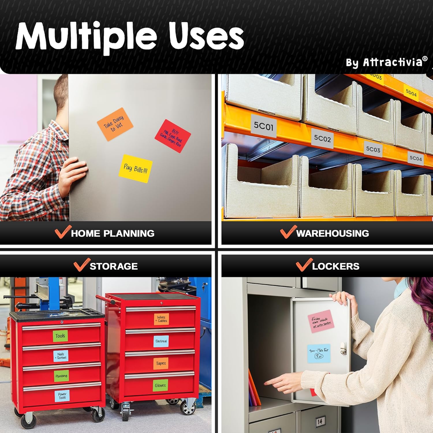 - Rewritable 100,000+ Times: Unlike flimsy labels that degrade over time, our white board magnetic labels are engineered to be erased and rewritten over 100,000 times without losing quality. The advanced coating prevents ink buildup, so every wipe restores a brand new surface, saving you money while reducing waste!
