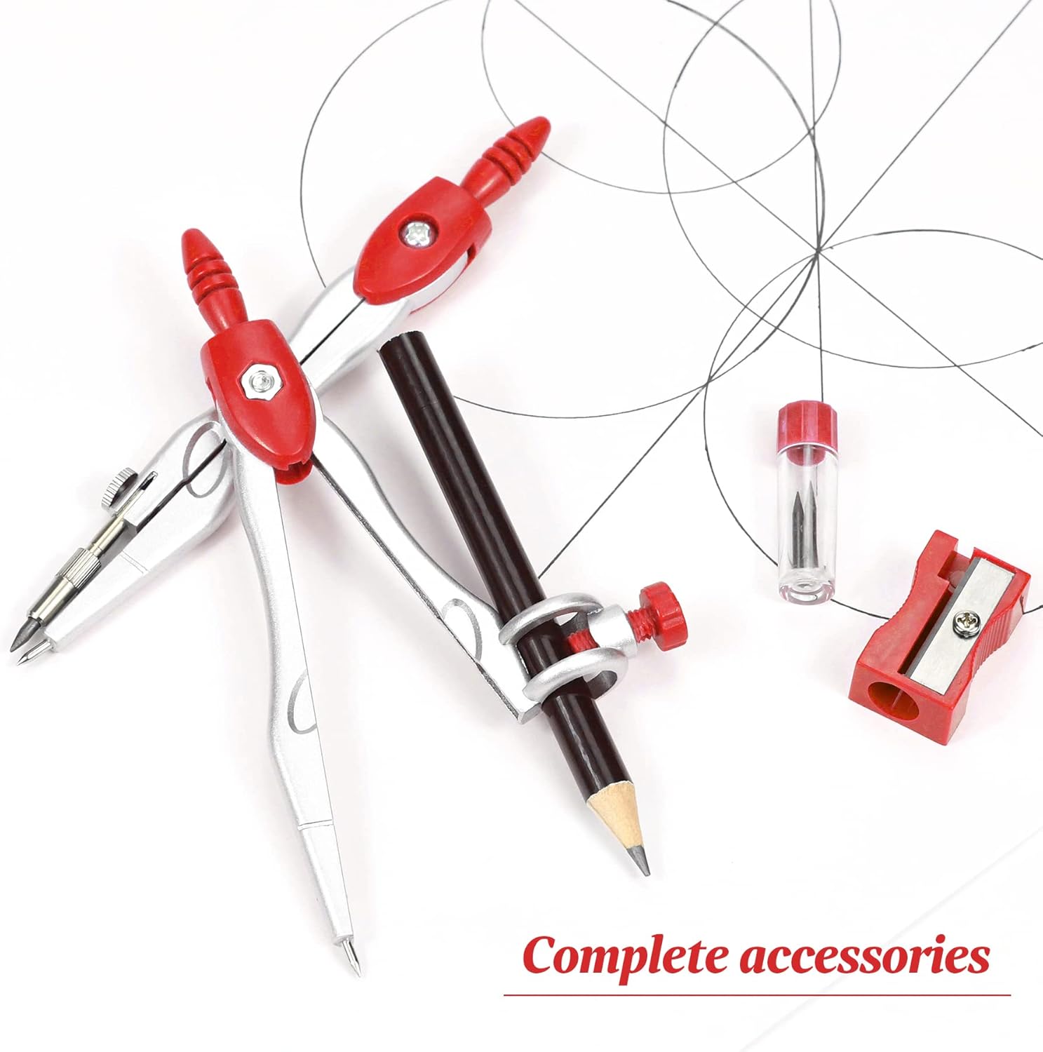 - A Practical Compass Geometry Set: Metal compasses will not bend, Ergonomically designed compass head is comfortable to hold, Universal Holder Compass work with any standard sized pencil or pen