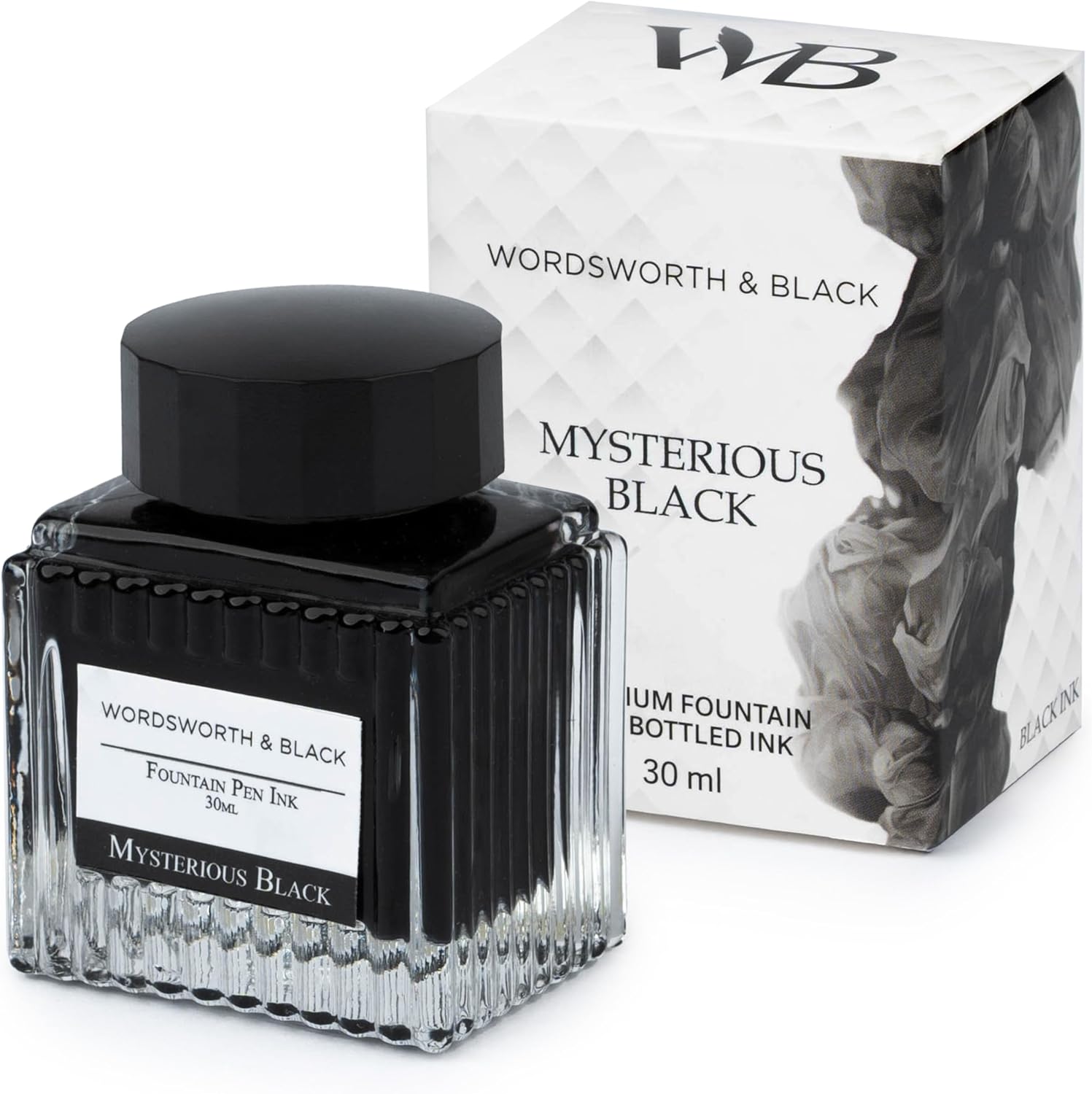 Wordsworth and Black Fountain Pen Ink Bottle (30 ml) Premium Luxury Edition, [Mysterious Black] Fountain Pens Bottled Ink; Classic Designed Bottle Smooth Flow 30 ml