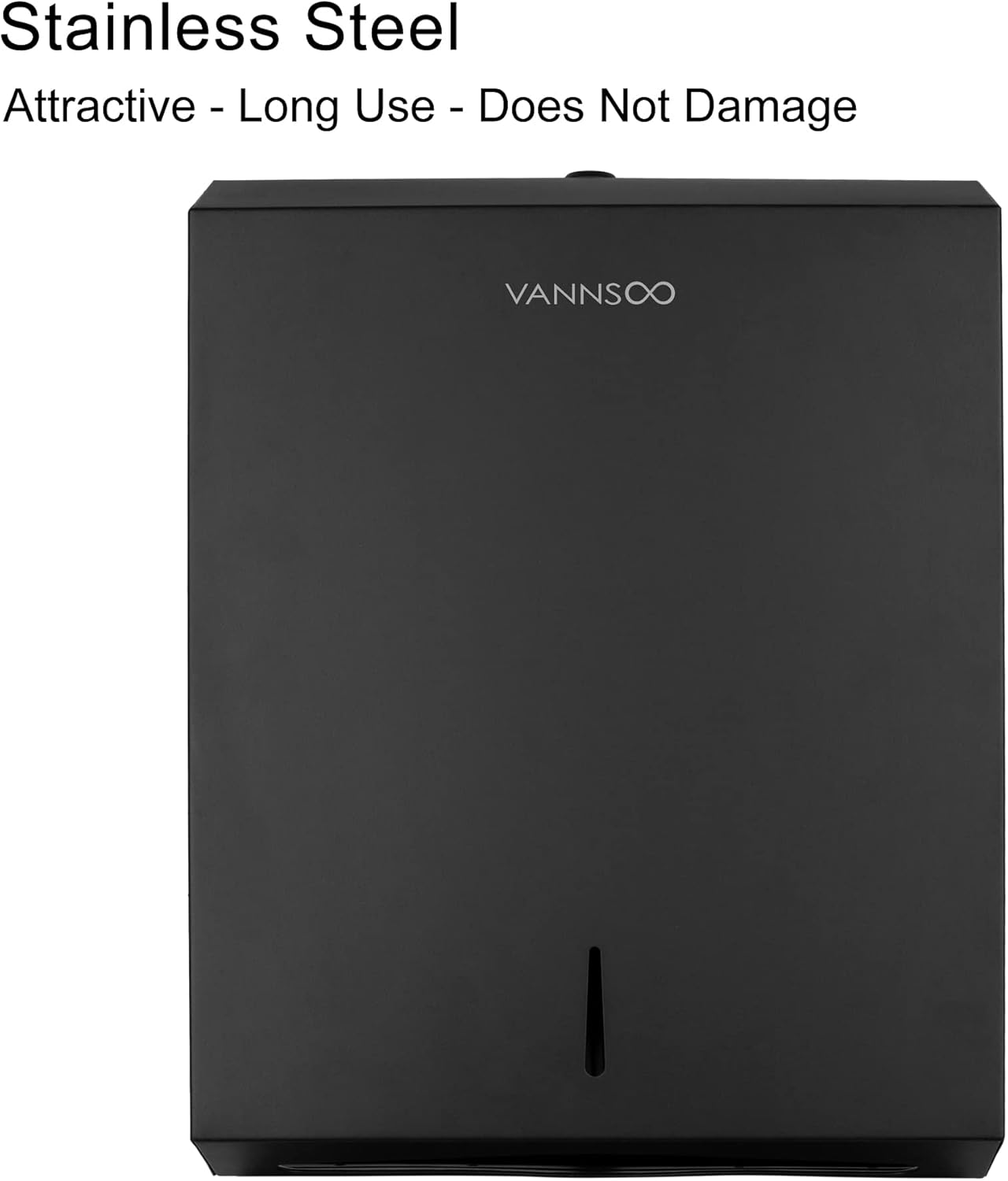 Paper Towel Dispenser, Commercial Stainless Steel Tri-fold/Multi-fold/C-Fold Paper Towel Holder Wall Mount Key (Black)
