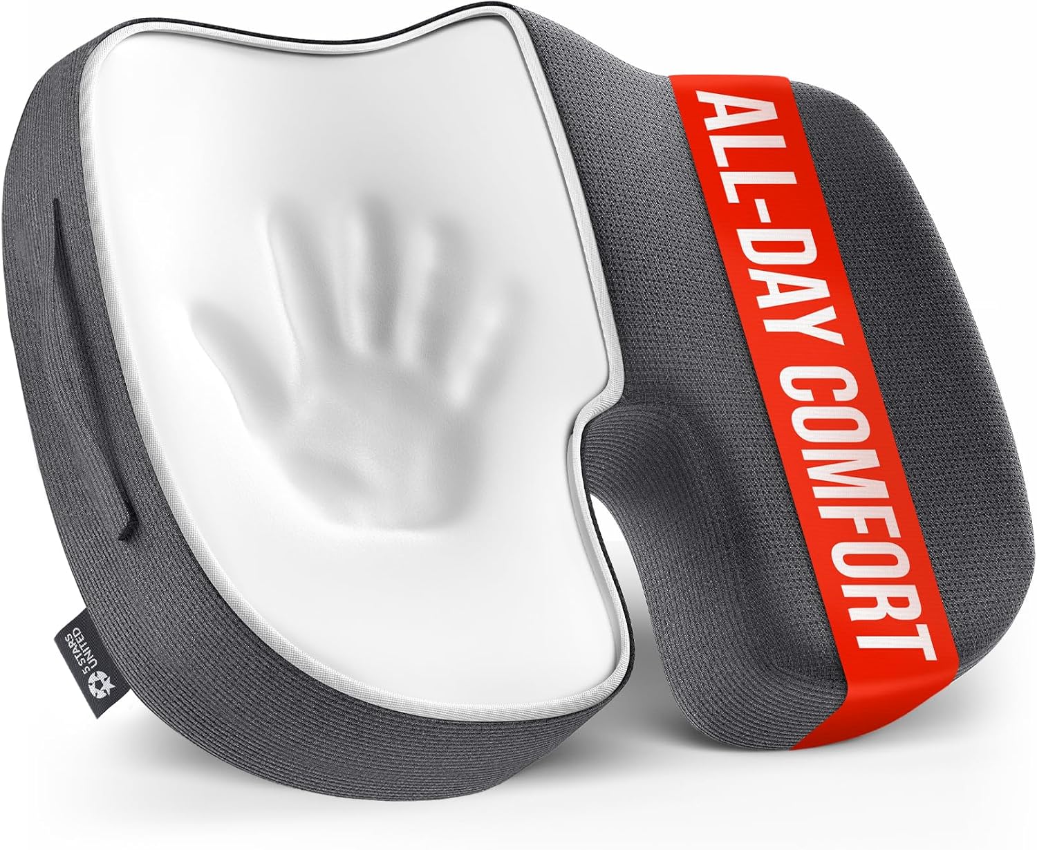 5 STARS UNITED Seat Cushion for Tailbone Pain Relief โ Memory Foam Lifting Pillow for Coccyx, Hip, Hemorrhoid, Sciatica & Post-Surgery Recovery โ Wheelchair, Car, Desk, Gaming & Office Chairs, D Gray