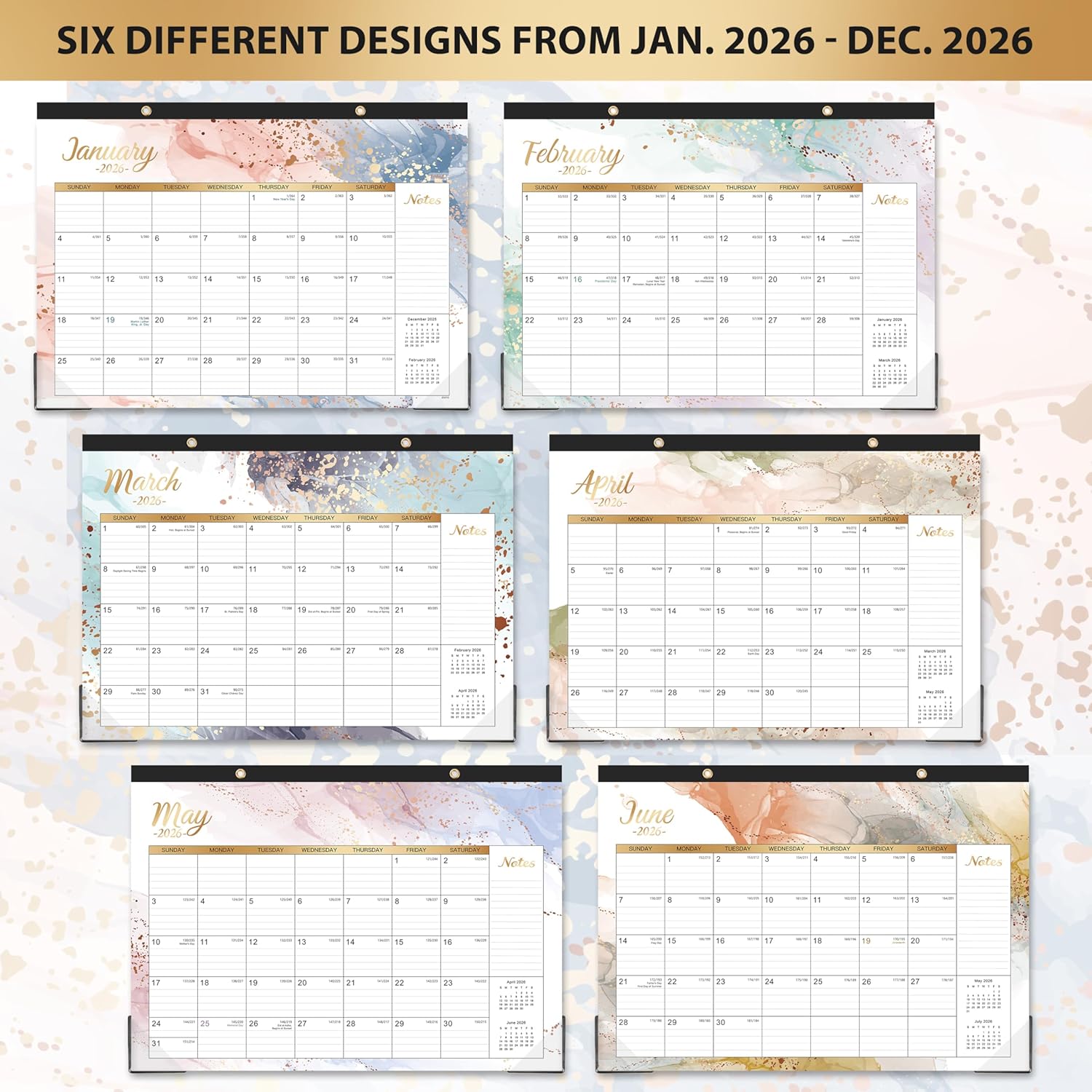 - AMAZING CONSTRUCTION - 2026 Desk calendar has 12 tear-off sheets, so perforated pages can be easily torn off. 2 clear corner protectors and hanging holes make it a good for wall hanging. Clear corners keep pages flat on desk or wall. The 2026 desk calendar also has a cardboard back support. The desk calendar also works as a wall calendar 2026 or desk pad, a great tool for long term planning.