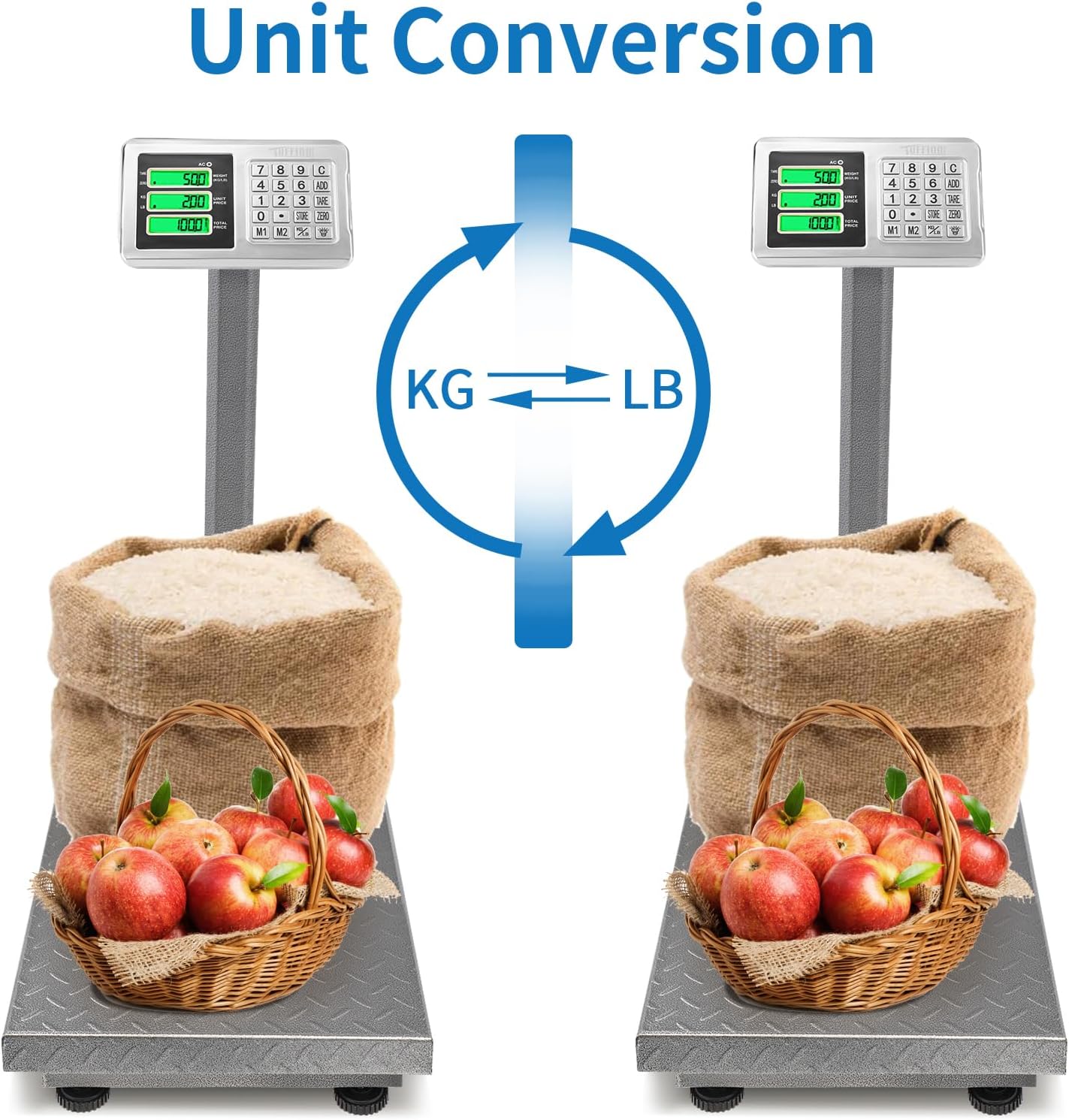 TUFFIOM 661lbs Electronic Industrial Commercial Platform Scale,Stainless Steel High-Definition LCD Display,Digital Floor Heavy Duty,Luggage Package Price Computing Postal Shipping Mailing,Grey