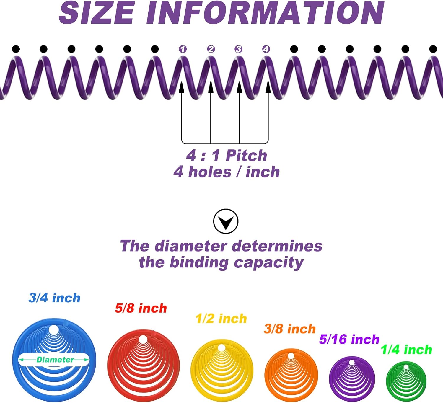 - Multiple Sizes for Your Choices: plastic spiral binding coils contains 6 diverse sizes, namely 1/4", 5/16", 3/8", 1/2", 5/8" and 3/4", to match and beautify most documents or pages, ideal accessories for offices