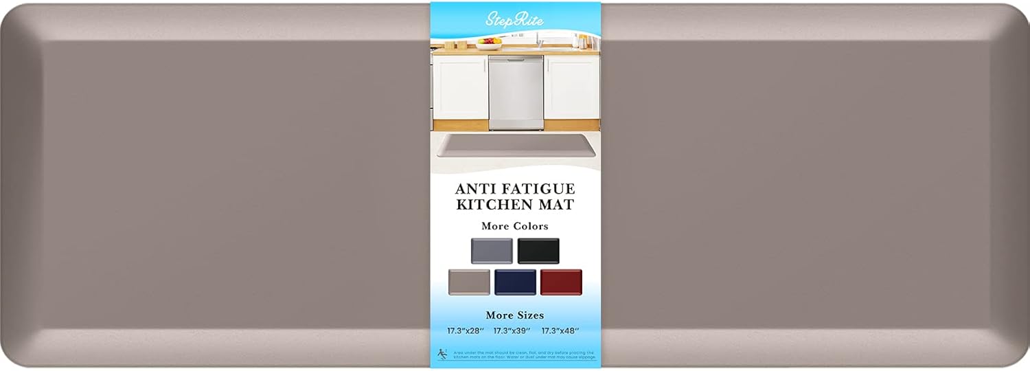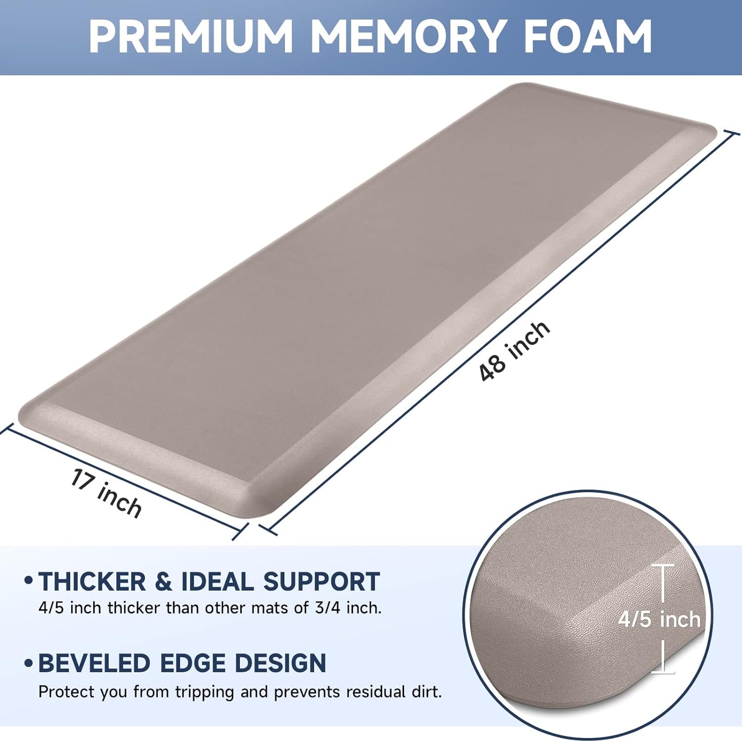 StepRite 4/5 Inch Thick Kitchen Mat Anti Fatigue Mat Kitchen Rugs Kitchen Decor Non-Slip, Stain Resistant, Waterproof Kitchen Mats Desk Mat for Kitchen, Office, Workshop, Khaki, 17'' x 47''