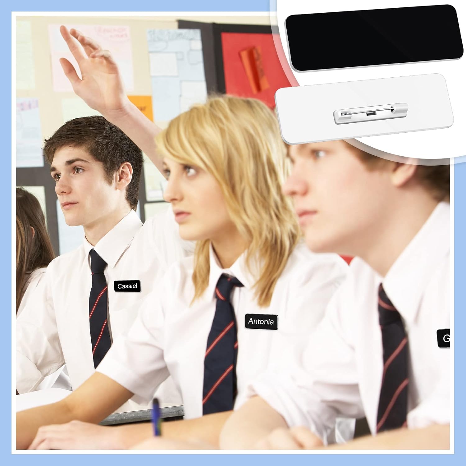 Breling 100 Pieces Name Tags with Pins 1 x 3 Inches Blank Name Tags Reusable ID Badge Holders with Clip for Office Workers Students Employee Custom(Black)