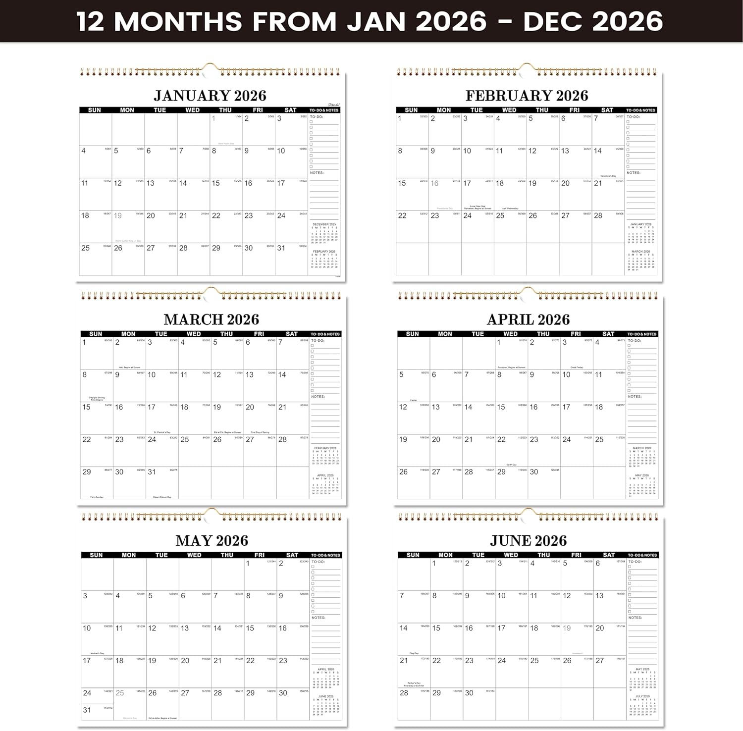 - 🖋 Premium Quality Paper - Papers of this wall calendar 2026 can avoid ink feathering and bleeding. High-quality pages made from acid-free paper, resistant from the damage by light and air.Great for writing and you can see your plans clearly.