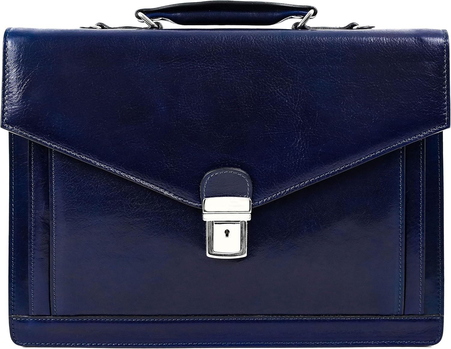 Time Resistance Leather Briefcase for Men - Business Laptop Bag - Italian Handmade Leather Bag - Attache - Gift Box Included