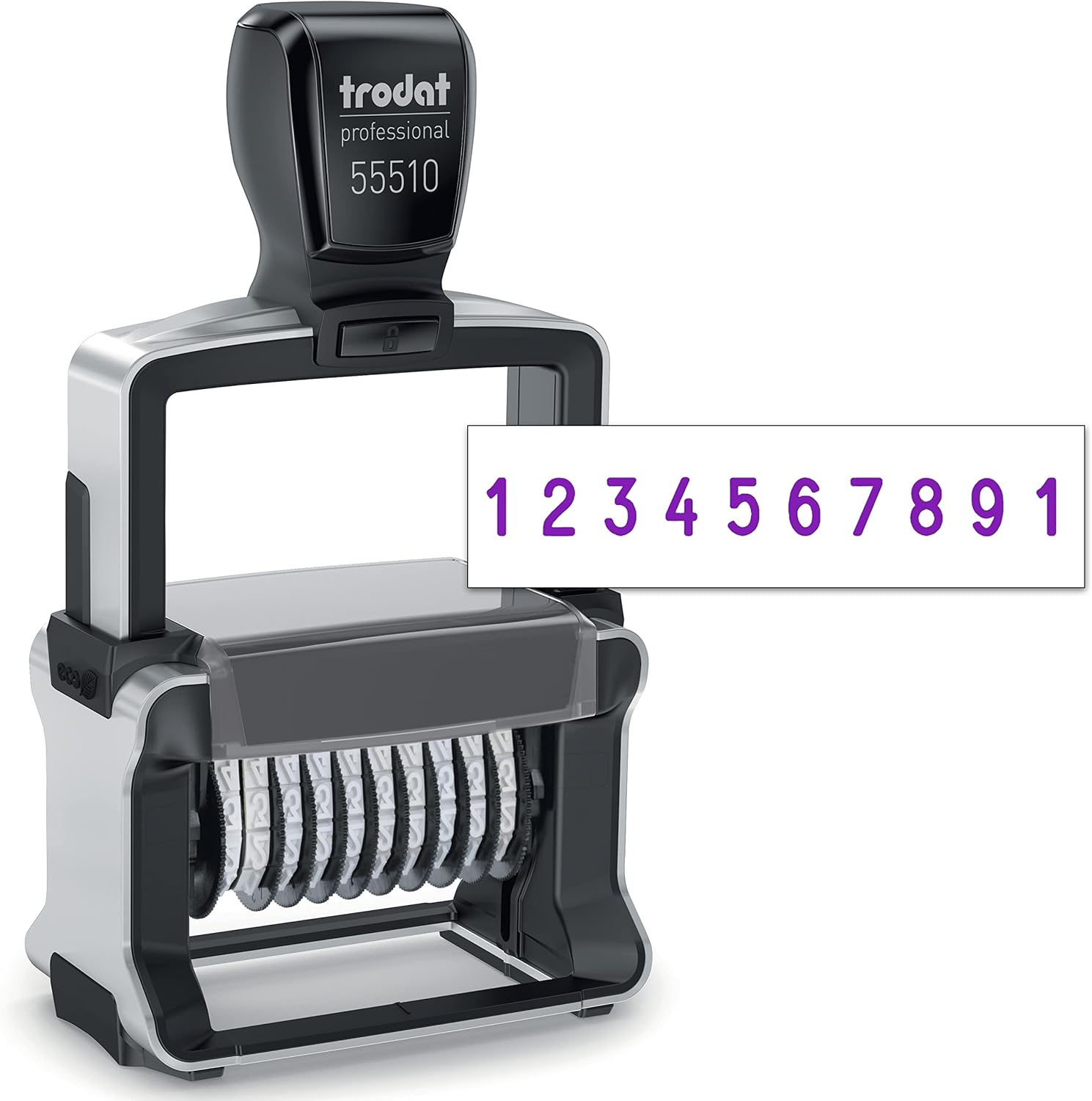 - Document proof stamping ink according to DIN ISO 14145-2 – dries quickly, does not fade, and helps protect against forgery and fraud as it cannot be removed without leaving visible traces