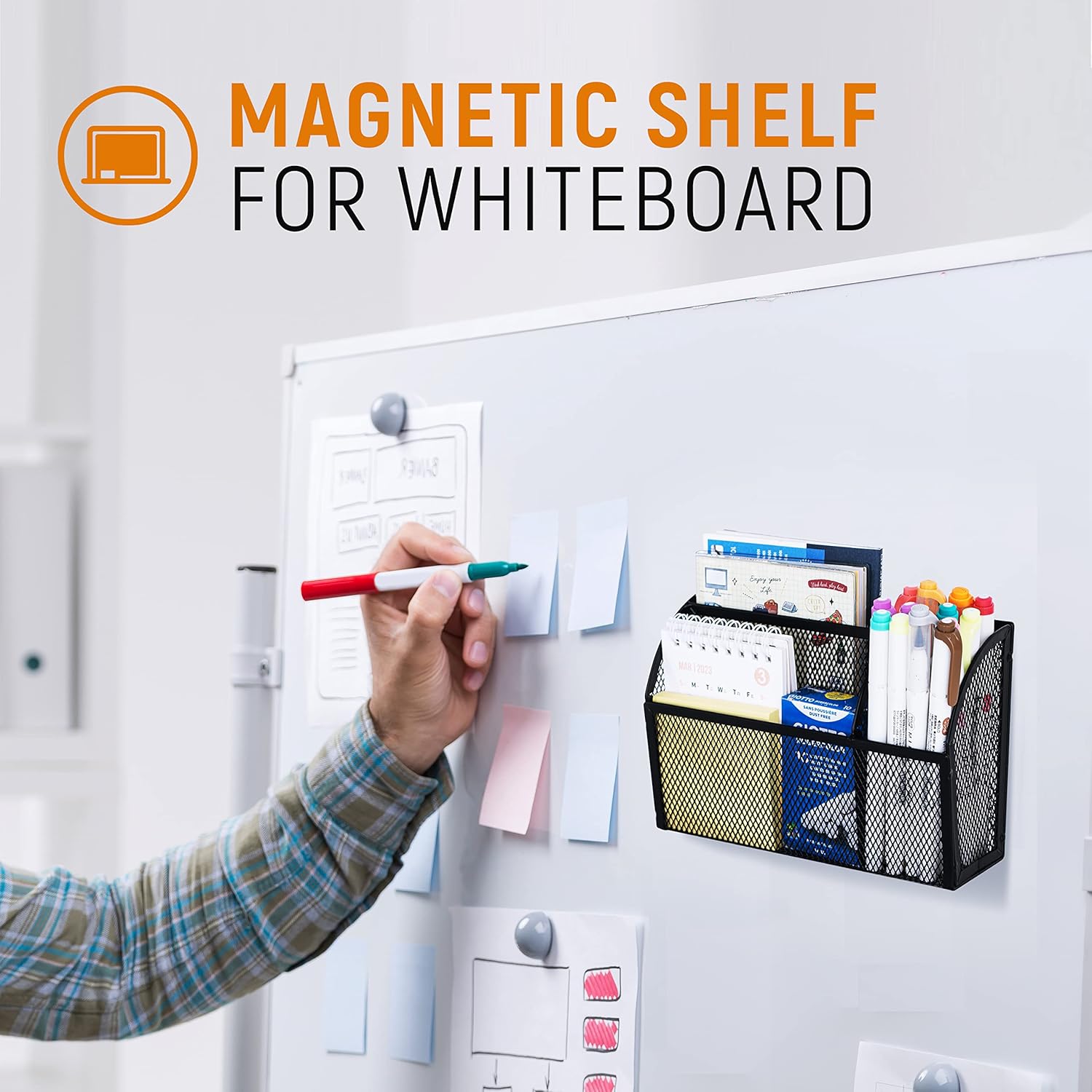 DALTACK Magnetic Pencil Holder Magnetic Shelf for the Whiteboard 3-Grid Mesh Magnetic Pen Holder for Refrigerator Magnetic Organizer Locker Accessories Organizer for Home, School and Office, Black