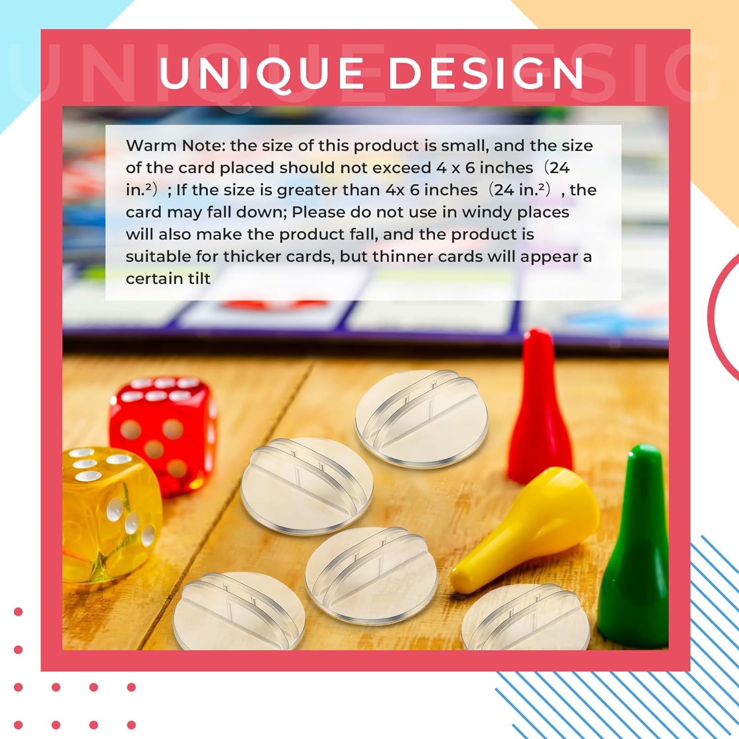 - Round Base: our translucent paper miniature bases are designed in round base, can be placed smoothly on the table, not easy to slip, to hold your card firmly; The circular base is 1 inch, the slot width is 0.08 inches, and the slot depth is 0.3 inches. The maximum thickness of the cards that can be held is 0.08 inches. If there are too few cards or they are too thin, the cards will not be held firmly.