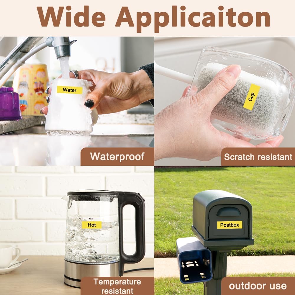- Product features : Split back, water resistant, fading resistant, abrasion resistant, temperature resistant, strong adhesive. This compatibel 9mm tze-621 Black on Yellow label tape is suitable for indoor and outdoor use