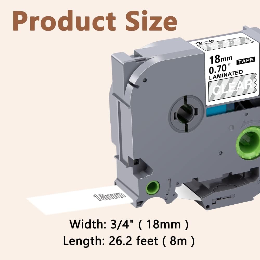 - Product features - The replacement compatible for Brother p-touch label tape 18mm tze-145 is split back, water resistant, fading resistant, abrasion resistant, temperature resistant, strong adhesive. The ptouch label tape 18mm tze-145 white on clear tape is suitable for indoor and outdoor use