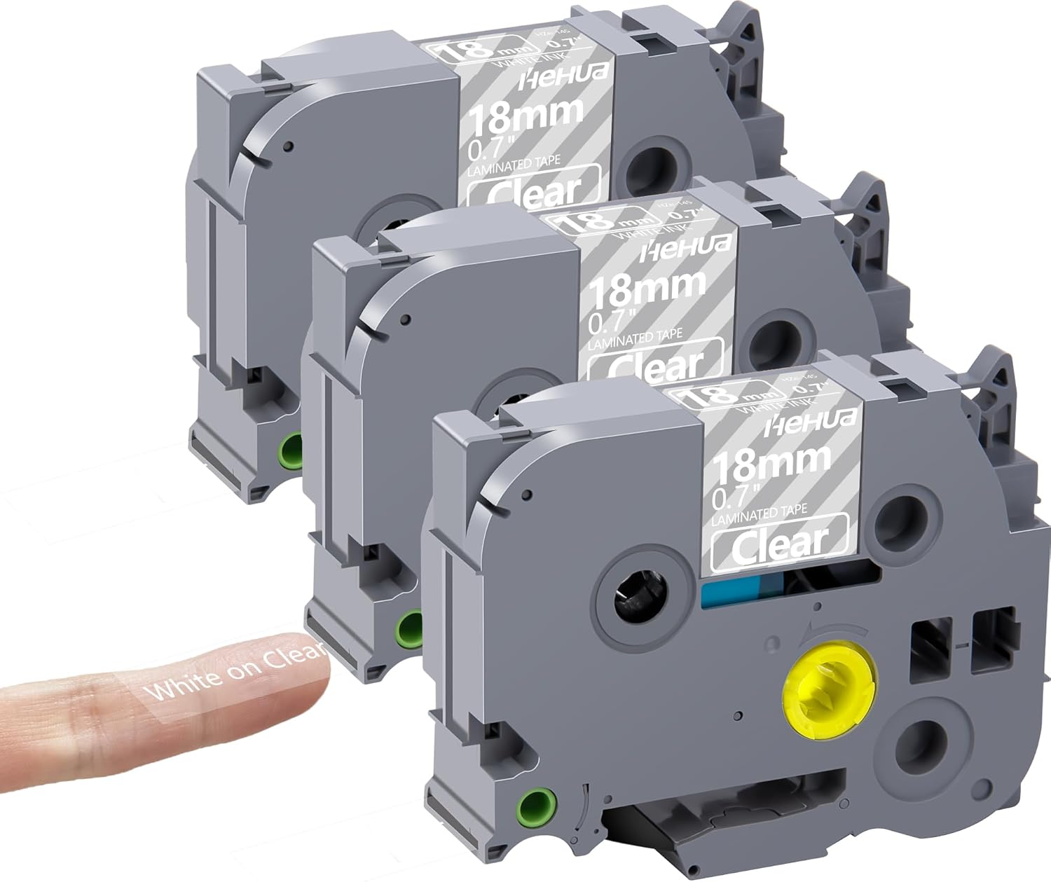 Hehua 18mm 0.7 Laminated Clear Tape Compatible for Brother P-Touch TZe-145 TZe145 TZ-145 TZ145 TZe TZ Label Tape for Ptouch PT D400 D600 P710bt, 3/4'' x 26.2ft White on Clear, 3 Pack