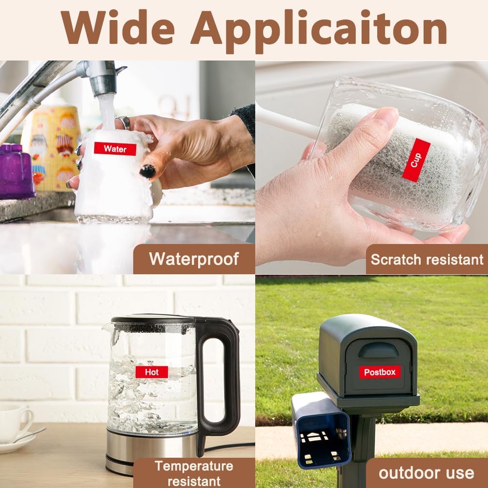 - Product features : Split back, water resistant, fading resistant, abrasion resistant, temperature resistant, strong adhesive. This compatibel 12mm tze-435 White on Red label tape is suitable for indoor and outdoor use