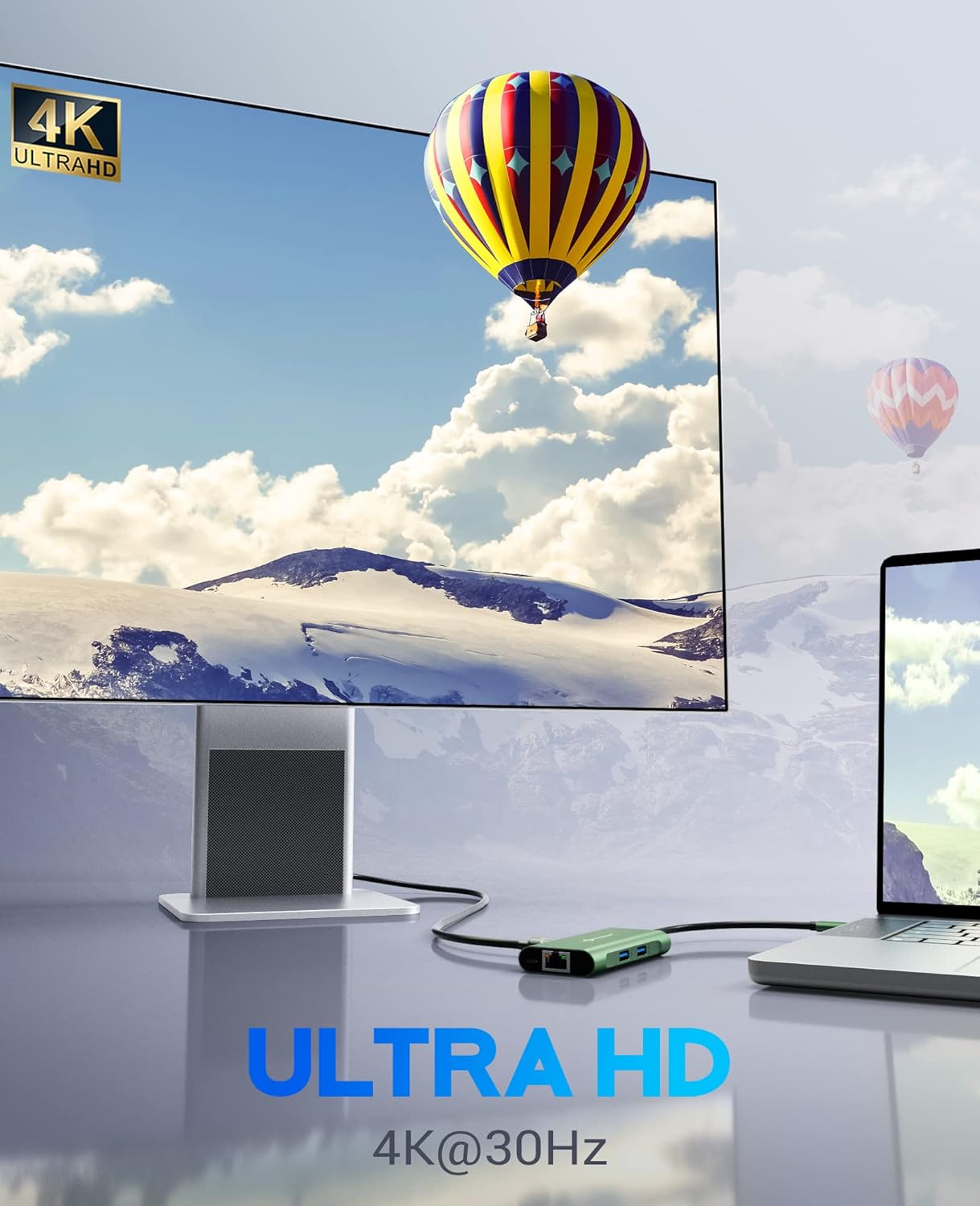 UtechSmart USB C Hub, Ethernet Multiport Adapter 6 in 1 USB C to HDMI Dock Compatible for MacBook Pro/Air, Chromebook, Dell XPS, HP and Type C Devices (Gigabit Ethernet 100W PD 4K HDMI USB 3.0) Green