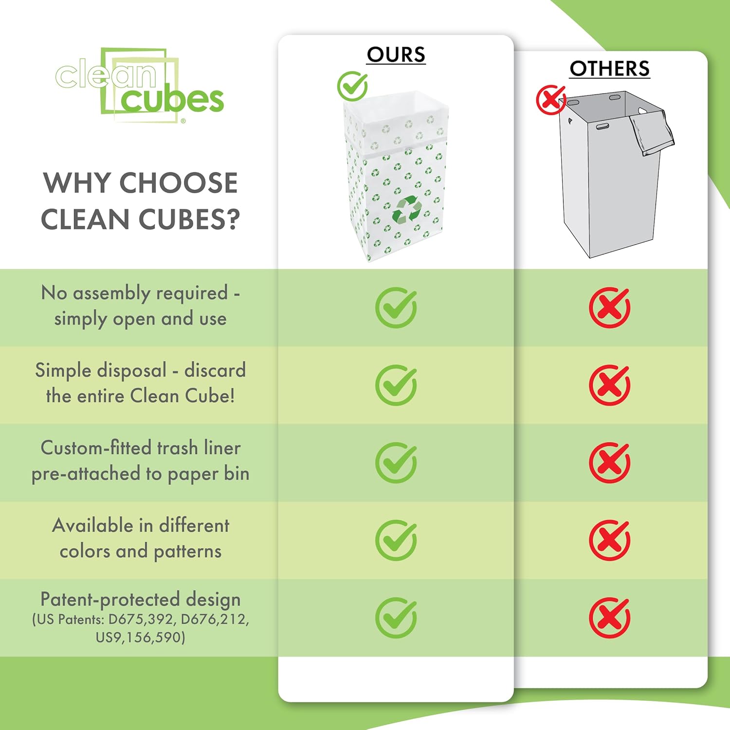 - ✅【VALUE 3-PACK】Includes 3 Clean Cubes per package — each bin comes with 3 custom-fitted trash liners. 30-gallon capacity (17” x 14” x 30”).
