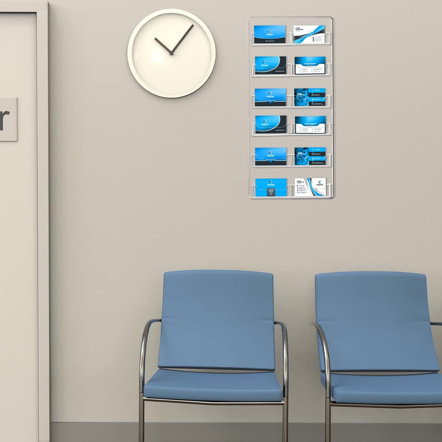 Qunclay 2 Pack 12 Pocket Acrylic Business Card Holder Wall Mount Clear Sticker Display Rack Vertical Multiple Gift Card Rack Display Stand for Home Documents Brochures Hanging Organizing Office Table