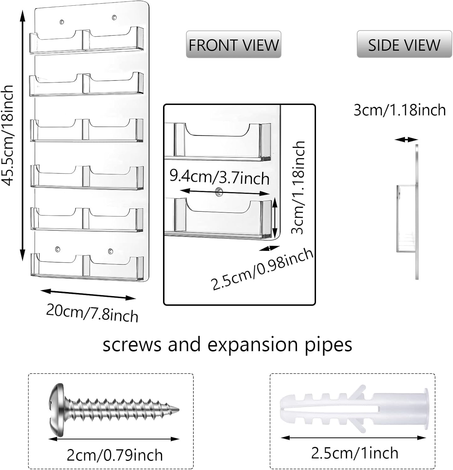 - Size Information: the overall dimension of the wall business card holder is about 17.9 x 7.87 x 1.18 inches, and the pocket dimension is about 3.74 x 1.18 x 1 inches, please check the size before ordering