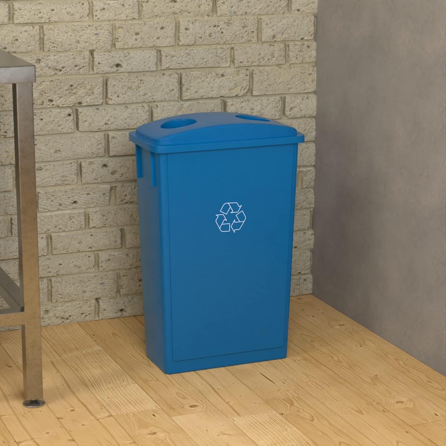 - [Bottle Slot Lid] Features two wide holes that are perfect for recycling bottles.