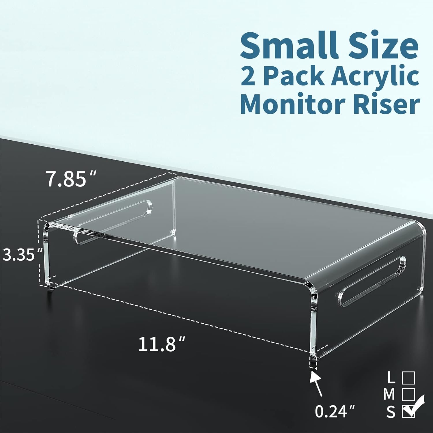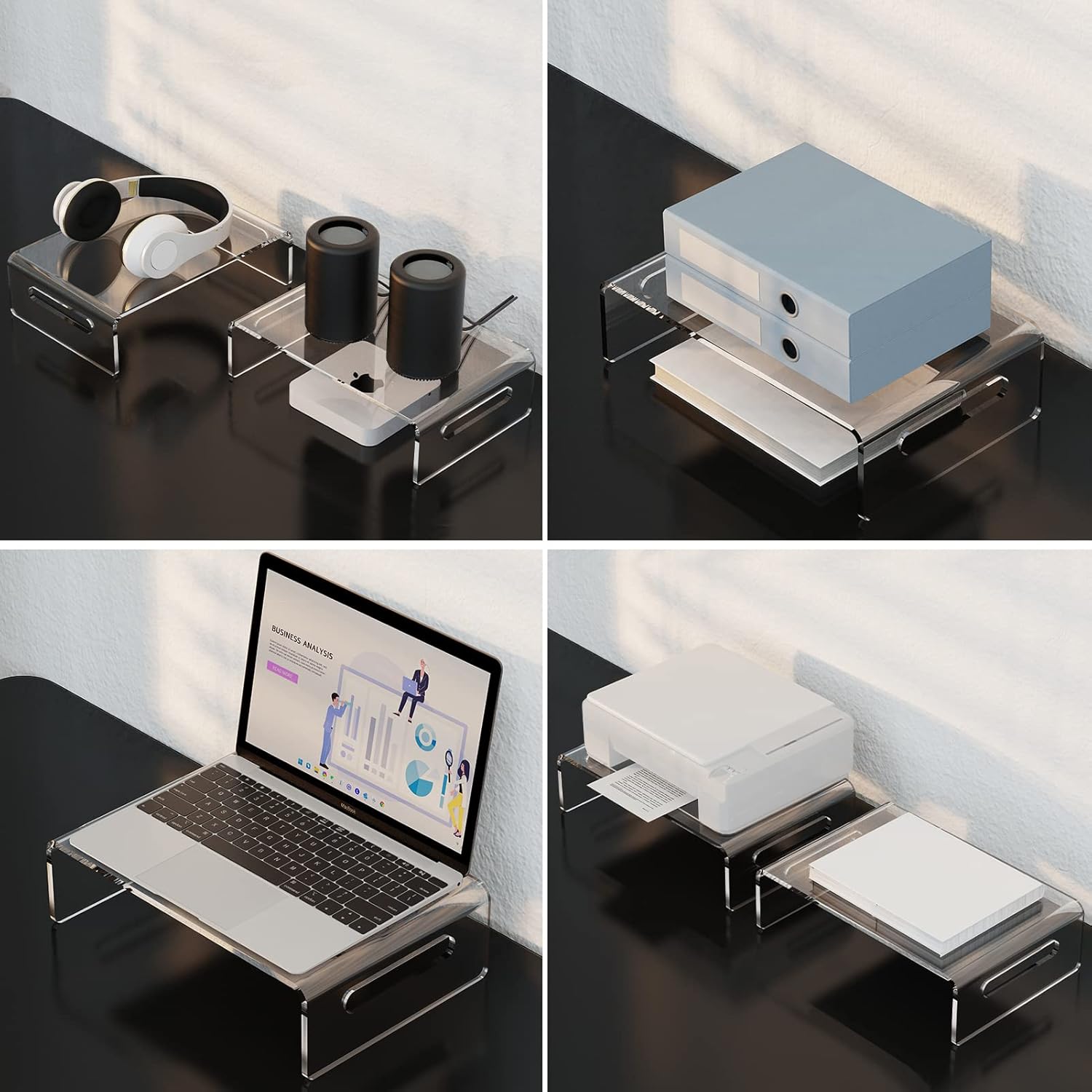 - Multi-functional: Featured with a 11.8 x 7.85 inches platform,clear monitor stand is suitable for most devices, including PC monitors, laptops, printers, fax machines, speakers, TV monitors, etc.. Perfect for home study room, office and meeting room.