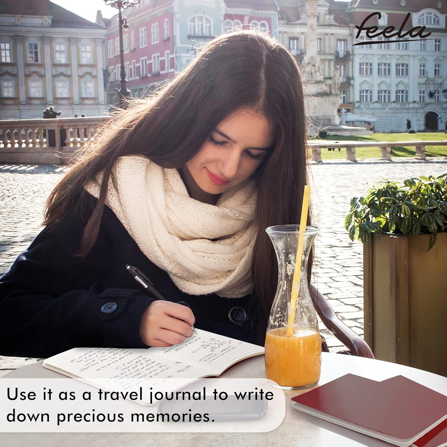 - Feela 8 Pack Soft Cover Journals include 8 wine A5 college ruled soft cover travel journals. 250 GSM colored paper cover outside and 80 GSM smooth writing lined pages inside.