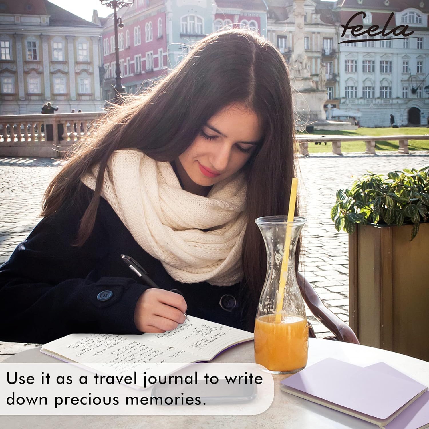 - Feela 8 Pack Soft Cover Journals include 8 light purple A5 college ruled soft cover travel journals. 250 GSM colored paper cover outside and 80 GSM smooth writing lined pages inside.