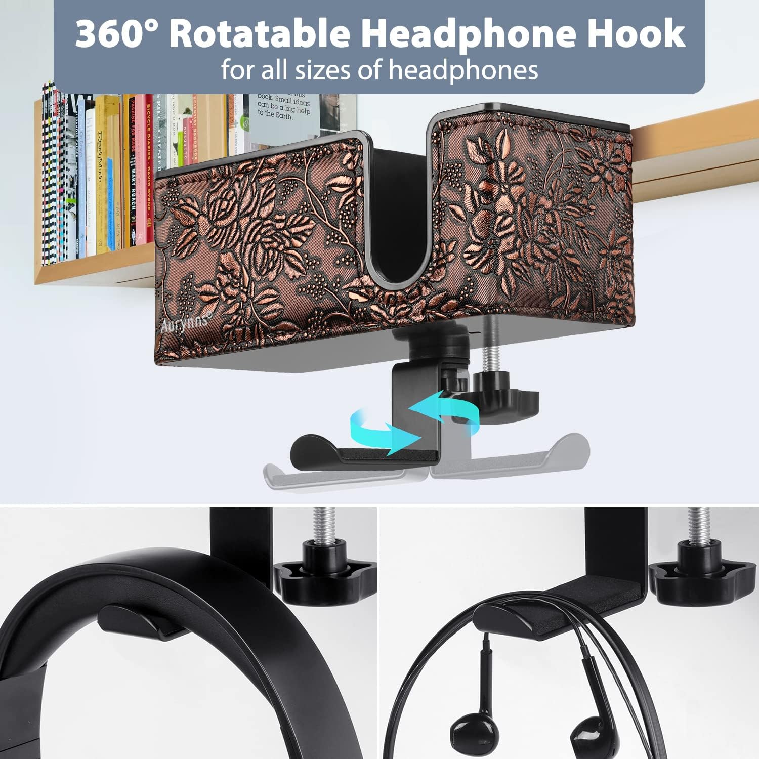 - 【Rotatable Headphone Hook】: The under desk headphone hook has a 360° Rotation. This hook is equipped with soft rubber pads, prevent your precious headphones from accidentally falling. And, it holds your headset's cable in place to prevent it from dragging on the ground or getting caught between your desk chair's legs.