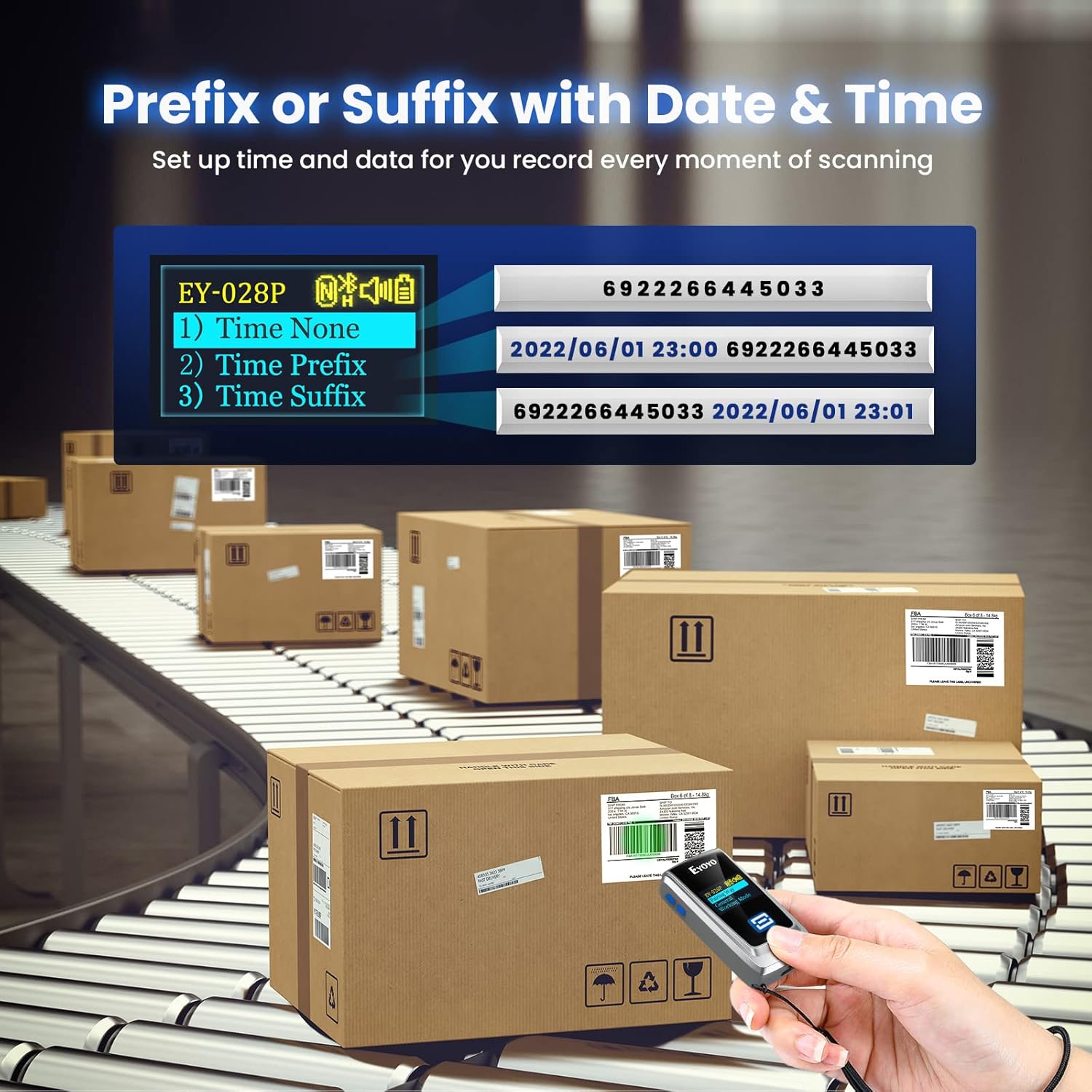 - Bright 1" Color Lcd Display, Say Goodbye To User Manual: Unlike an ordinary barcode scanner with a display, you can not only get the date & time, remaining battery, sound on/off, Bluetooth/2.4G connection status information from the screen but also set some common functions directly on the barcode scanner without scanning the set code in the manual. From now on, you no longer have to carry the user manual every day or be afraid of losing it