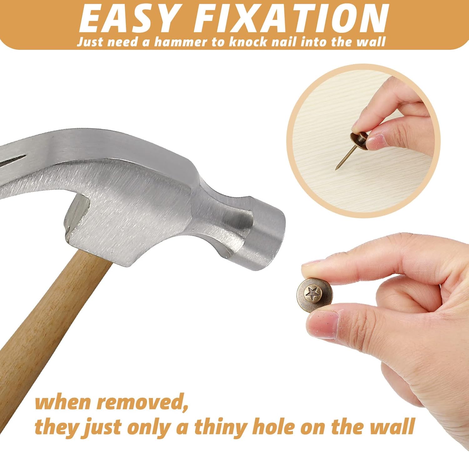 - Practical and Beautiful: picture hanger tacks are designed to be tacked into the wall, which will not affect the beauty of the home or damage the wall, just leaving a small hole in the wall; In addition, push pins for walls have proper crevice between 2 peg heads, which are suitable for you to hang a small pocket, key ring and more