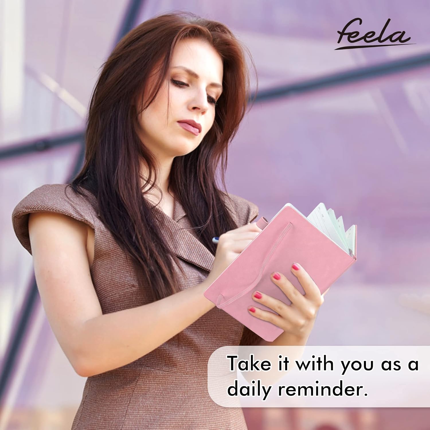 feela 5 Pack Notebooks Journals Bulk, Hardcover Notebook Classic Ruled Lined Journals with Pen Holder for Women Girls School Business Supplies, with 5 Black Pens, 120 GSM, 5.1”x8.3”, A5, Rose Pink