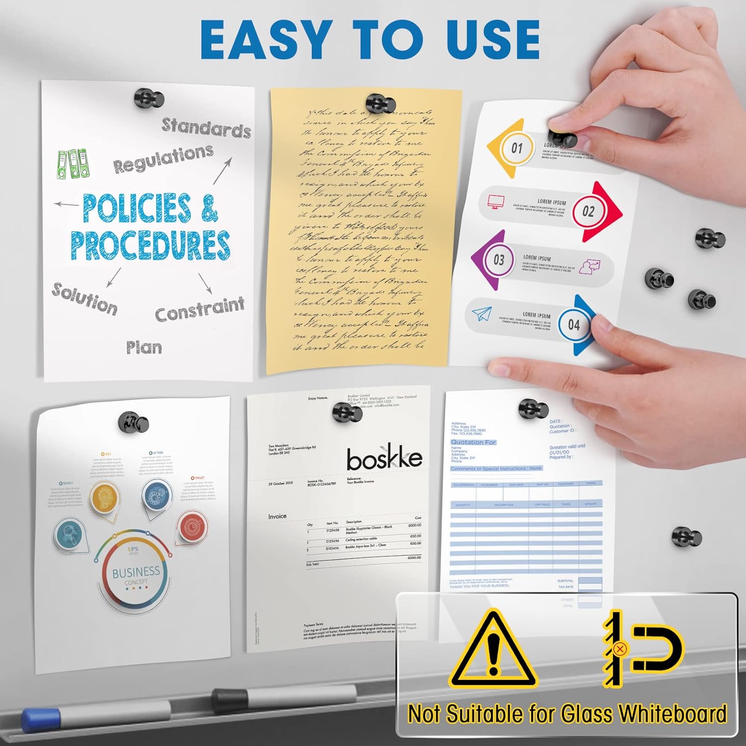 - Versatile and Powerful - These magnetic push pins are highly versatile and offer strong adhesion, securely holding up to 12 sheets of paper or other lightweight items on magnetic surfaces.