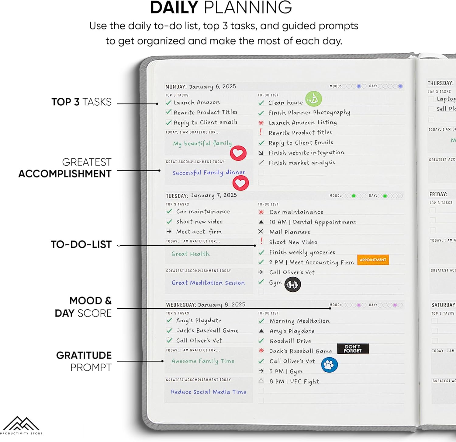 - Plan, Track & Reflect - Effective 2025 daily planner system complete with “Top 3” tasks, to do list, reflection prompts and a daily mood tracker. A perfect daily planner 2025-2026 to get the most out of each day. A perfect daily 2025-2026 planner to get the most out of each year.