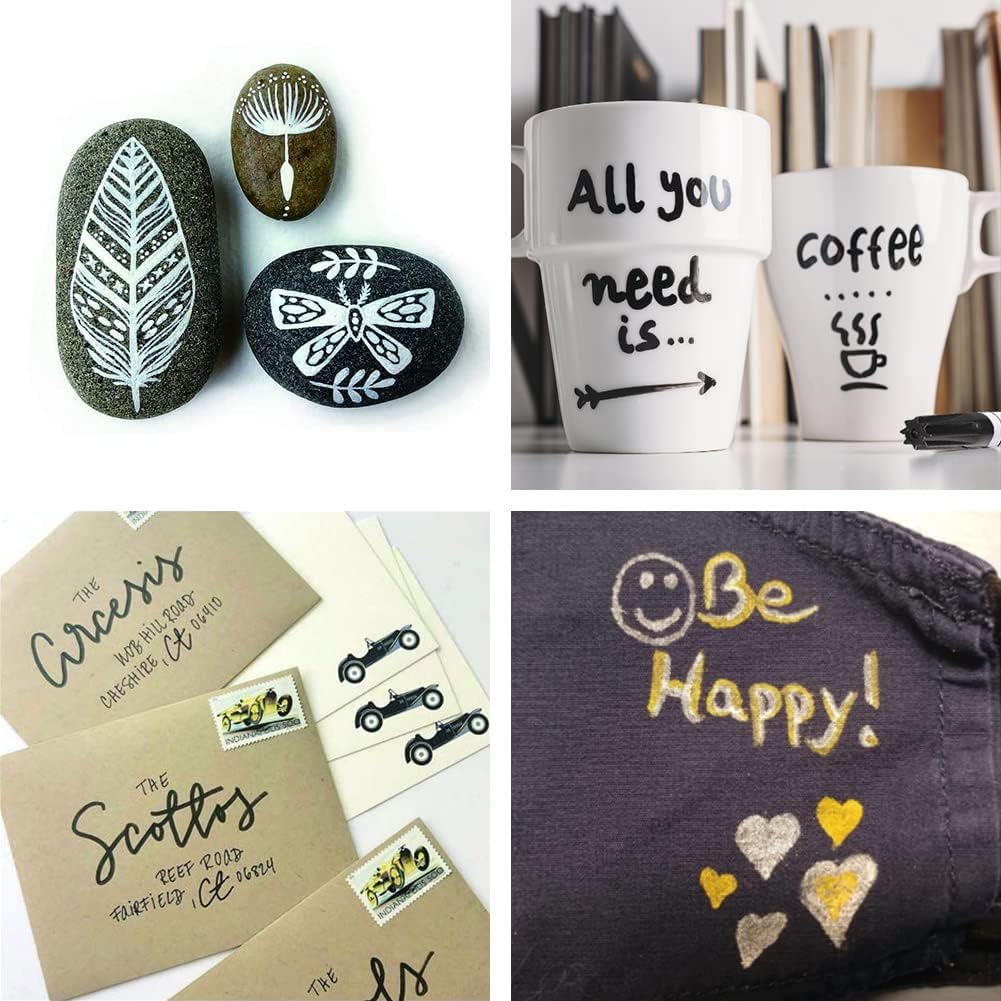 - 【Multipurpose】These wonderful paint pens can be used on multiple surfaces, such as rock, ceramic, wood, leather, plastic, fabric, canvas, stone, glass, metal, chalkboard craft supplies etc