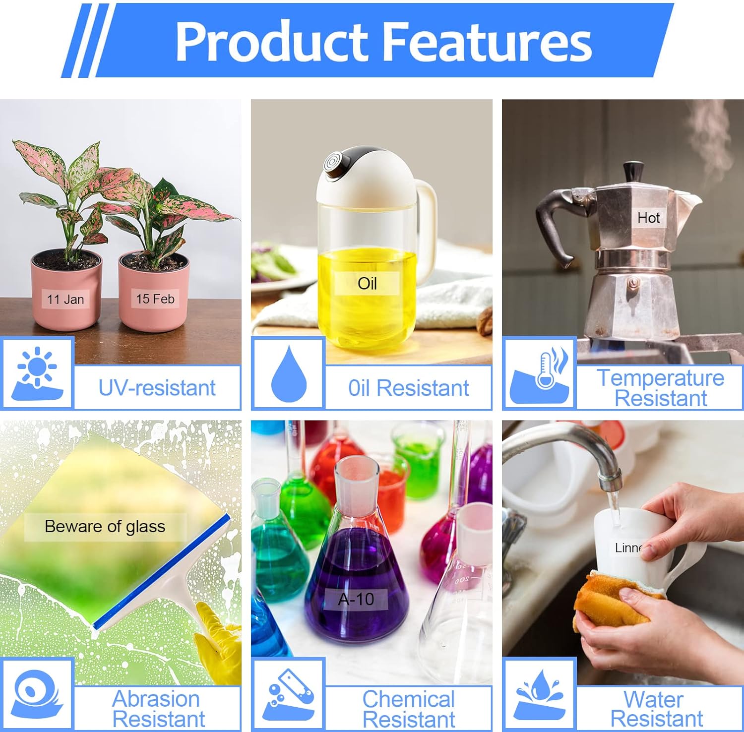 - These laminated label tapes are water resistant/waterproof, grime resistant, grease resistant, temperature resistant, abrasion resistant, chemical resistant as well as fading resistant.