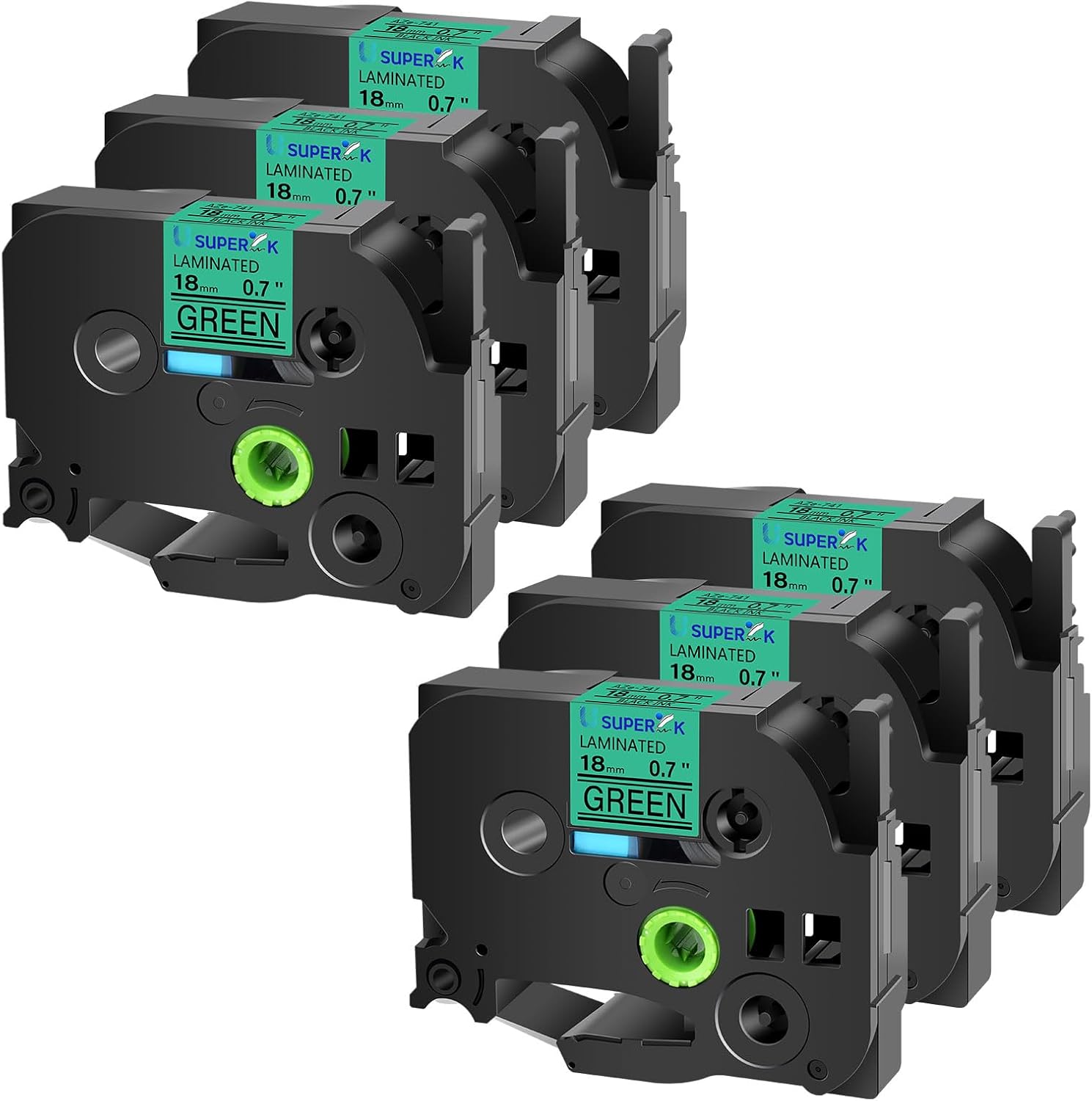 6PK Compatible for Brother P-Touch Label Maker Tape TZe-741 TZ-741 TZe741 TZ741 Black on Green 18mm 3/4 inch 0.7'' x 26.2ft Laminated TZe TZ Label Tape for PT-H500 PT-910BT PT-530 PT-550